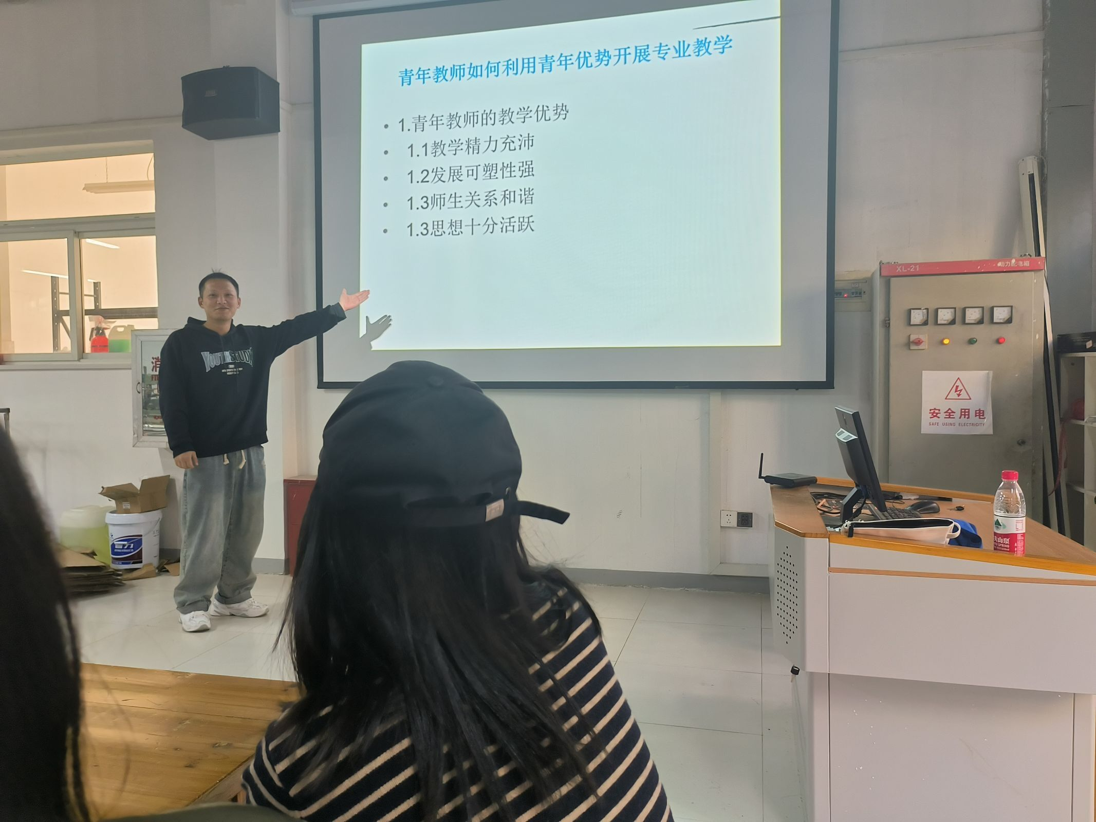 其次,施工管理课程组青年老师黄松结合自身的班级就《青年教师如何利用青年优势开展专业教学》相关问题和全体才思进行了分享,即:1.青年教师的教学优势:教学精力充沛、发展可塑性强、师生关系和谐、思想十分活跃。2.青年教师的教学劣势:上课时教学语言不精练、不能调动学生的积极性、教学中内容安排的过多、教学时间较短经验不足、课堂管理松驰把握不准。