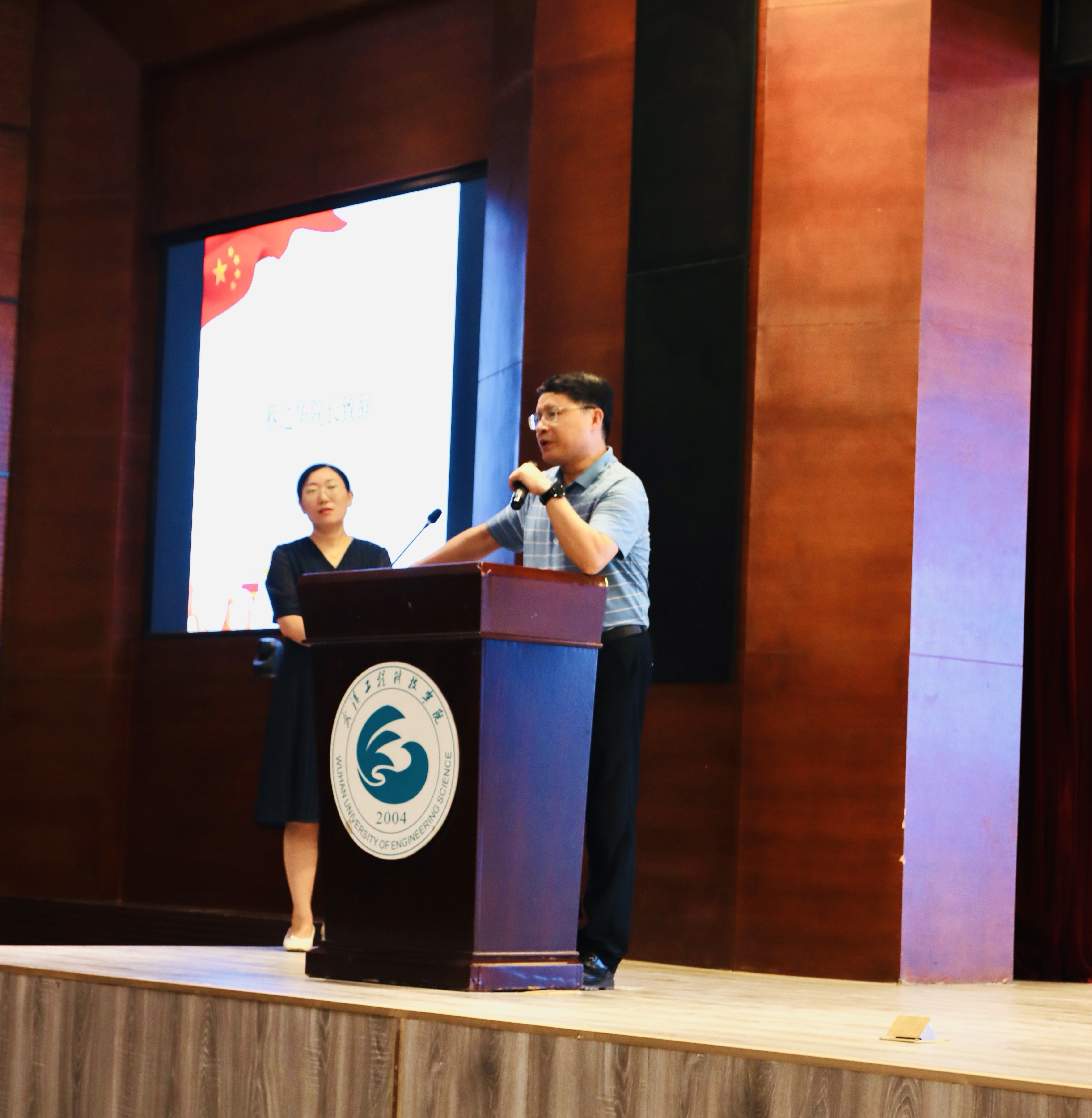 本网讯(通讯员 冯慧敏)9月11日下午,信息工程学院在三教报告厅举办了2021级专升本新生开学典礼。学院院长蔡之华、党总支书记王农跃、副院长杨明玲、团总支书记钟晓星出席典礼,学院2021级专升本新生辅导员以及专升本全体新生参加典礼。典礼由常务副院长黎丽主持。