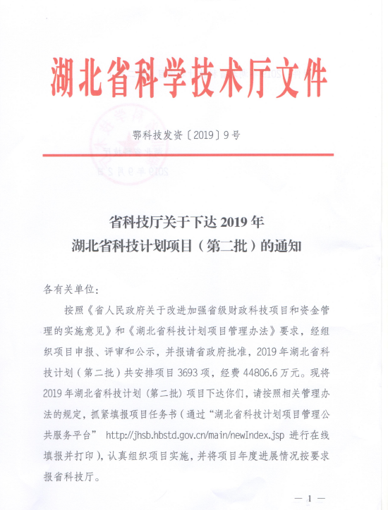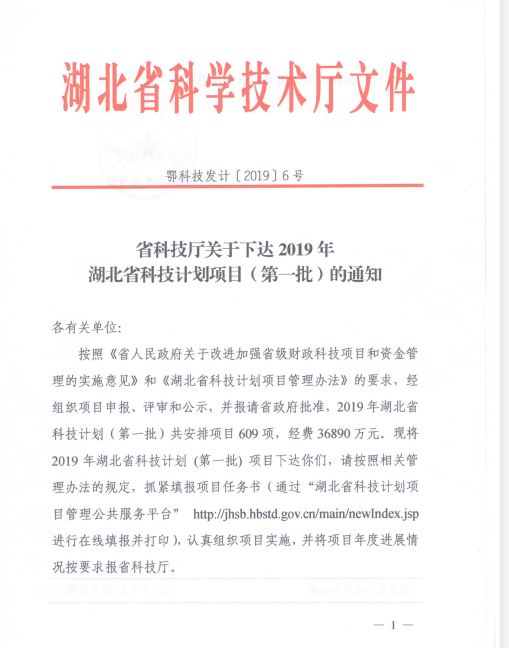 本网讯(通讯员姚伶俐)日前,湖北省科技厅正式发文公布了2019年度湖北省科技计划项目立项结果,我校获批2项湖北省科技计划项目。