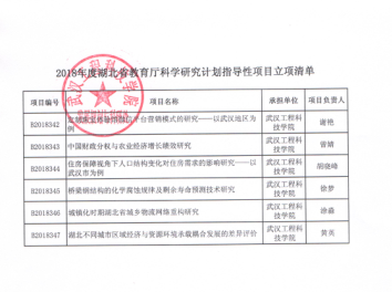 本网讯(通讯员 姚伶俐)日前,湖北省教育厅下发《湖北省教育厅关于下达2018年度科研计划项目的通知》(鄂教科函〔2018〕9号),公布了2018年度湖北省教育厅科学技术研究项目立项名单,我校6个项目获准立项。