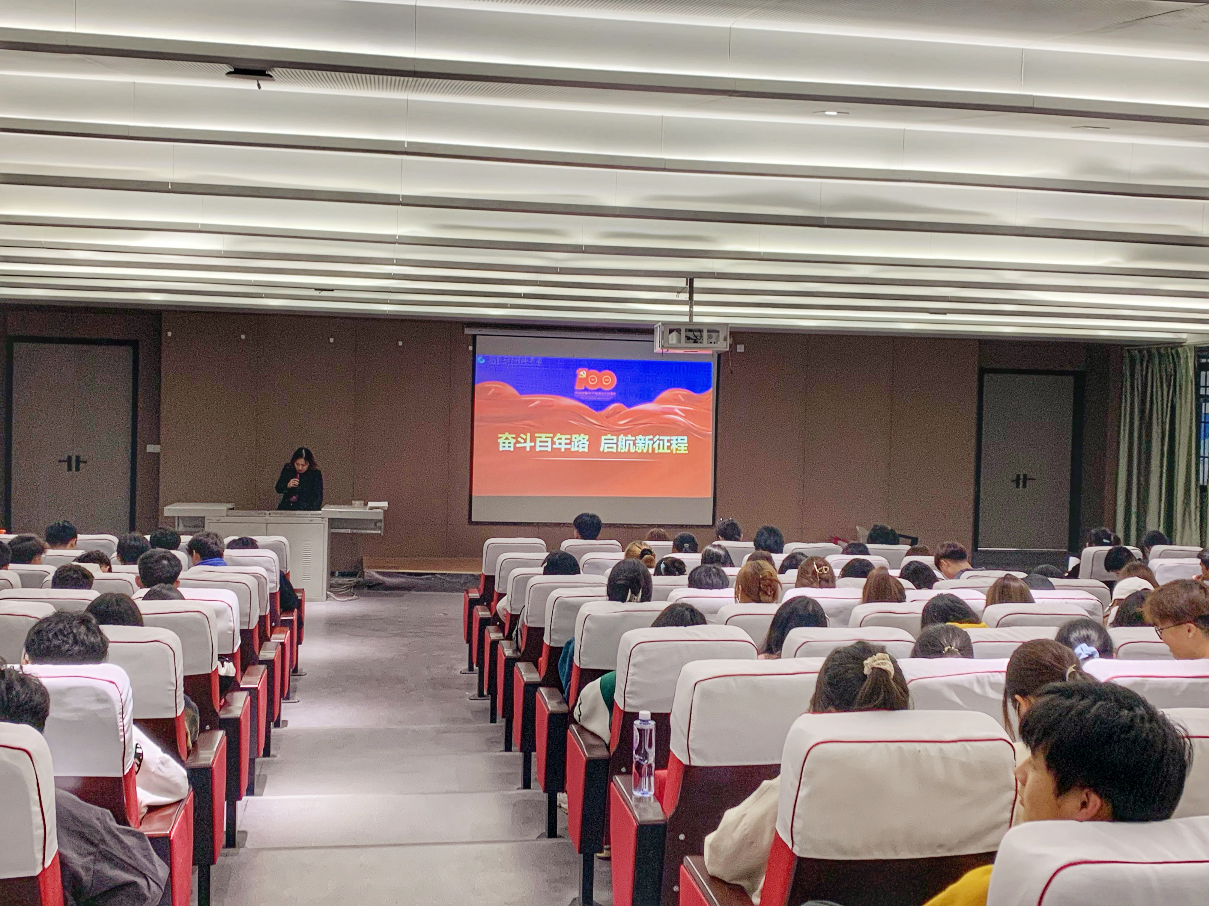 讲座中,胡晶晶结合自身学习和工作经历,用丰富鲜活的事例、详实的数据、精彩的案例,为同学们带来了一堂既有理论深度,又有现实温度的形势与政策课。她带领同学们观看了习近平总书记在中国共产党成立100周年大会上讲话的视频,她强调中国从站起来、富起来到强起来都离不开中国共产党的伟大领导。课程第一部分,她分别从开天辟地,改天换地,翻天覆地和惊天动地四个阶段讲述了中国共产党的百年奋斗路。百年时间,中国共产党带领各族人民为实现中华民族伟大复兴创造和奠定了制度基础和坚实的物质基础。课程第二部分,胡晶晶针对习总书记“七•一”讲话提出的“伟大建党精神”从4个方面进行了诠释。最后,胡晶晶说到,“九个必须”揭示了过去我们为什么能够成功、未来我们怎样才能继续成功的深刻道理,而学生应牢牢坚持“九个必须”,以此激励自己在新征程上更加坚定、更加自觉地牢记初心使命、开创美好未来。