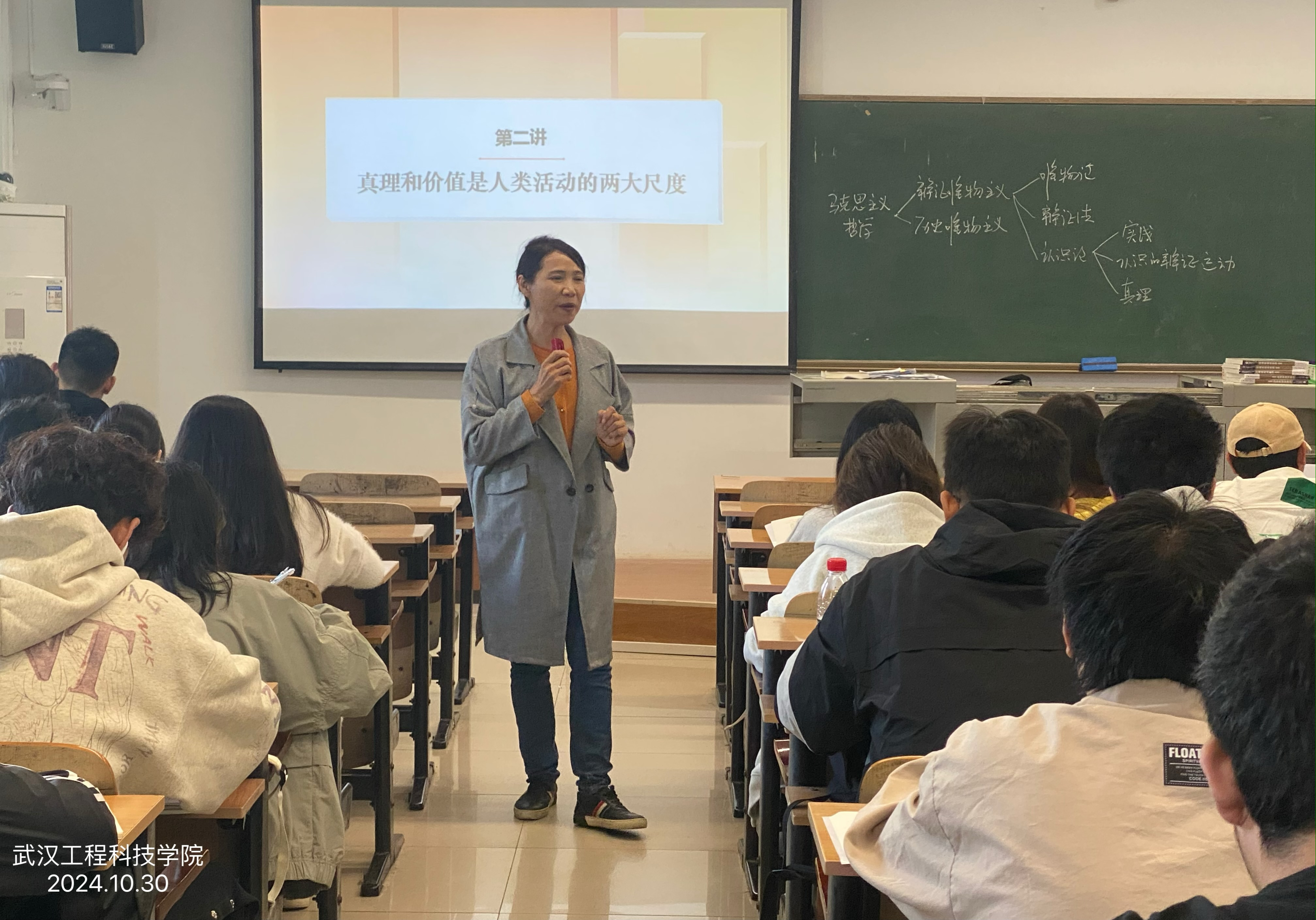 课堂伊始,刘郦教授以问题为导入,引导学生们思考“世界上是否有永恒不变的真理”,并通过分享马克思《给〈祖国纪事〉杂志社编辑部的信》的内容,组织学生探讨马克思秉承的是怎样的真理观。在学生们的探讨中,刘教授帮助学生归纳总结了马克思科学真理观的含义,随后旁征博引、结合案例深入分析了“真理的客观性”以及“真理的绝对性与相对性”,即真理的客观性要求我们必须以客观、公正的态度去追求和探索真理,摒弃主观偏见和片面认识;真理的绝对性和相对性则让我们认识到随着人类实践的不断发展和认识水平的提高,人们对真理的认识是一个不断深化和扩展的过程。课上,刘郦教授列举了我国改革开放以来的一系列伟大成就,如经济特区的建设、科技创新的突破等等,指出这些成果都是在马克思主义真理观的指导下通过不断实践探索取得的,并鼓励同学们要积极投身于实践,在实践中不断检验和发展自己的认识,为实现中华民族伟大复兴的中国梦贡献自己的力量。
