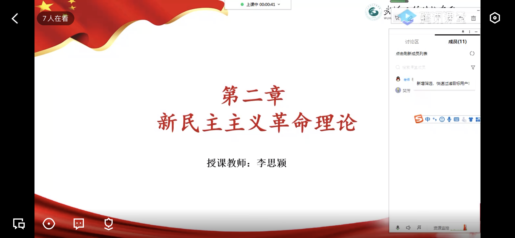 会上,李思颖老师利用腾讯课堂为全体教师模拟了《概论》课中“新民主主义革命理论”的部分教学内容。教师们围绕线上教学遇到的技术问题及解决办法进行了分享与交流。