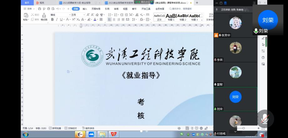 (通讯员 张美华 杨复伟)新冠疫情在全球施虐,国内疫情虽整体可控,但仍偶有发生。常态化防控的背景下,考虑到防控的需要和师生的安全,我校经研究决定新学期即将开启线上教学。在此背景下,8月25日,武汉工程科技学院思想政治理论课部就业创业教研室在线上召开《大学生就业指导》课程集体备课会,就即将面向应届毕业生开设的《大学生就业指导》课程线上教学的相关问题进行研究和部署,以确保课程地顺利实施。