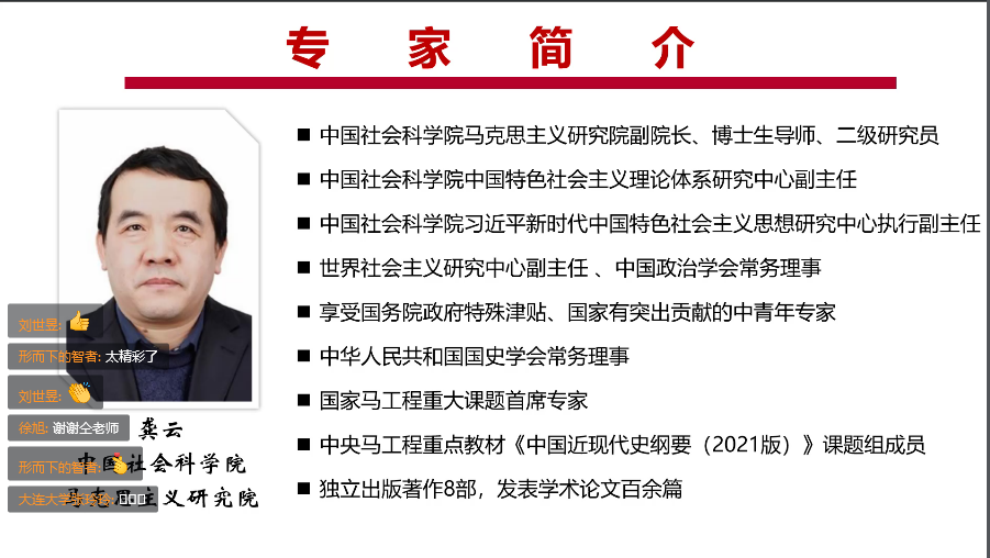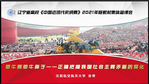 (通讯员 曾月柯)为进一步把握新教材,更好地提高《中国近现代史纲要》的教学水平,2021年11月6日上午9点,我院德法与纲要教研室全体老师集聚云端,通过腾讯会议参加了由中共辽宁省教育委员会和辽宁省教育厅主办的、沈阳航空航天大学马克思主义学院承办的“辽宁省高校《中国近现代史纲要》2021版教材集体备课会”。