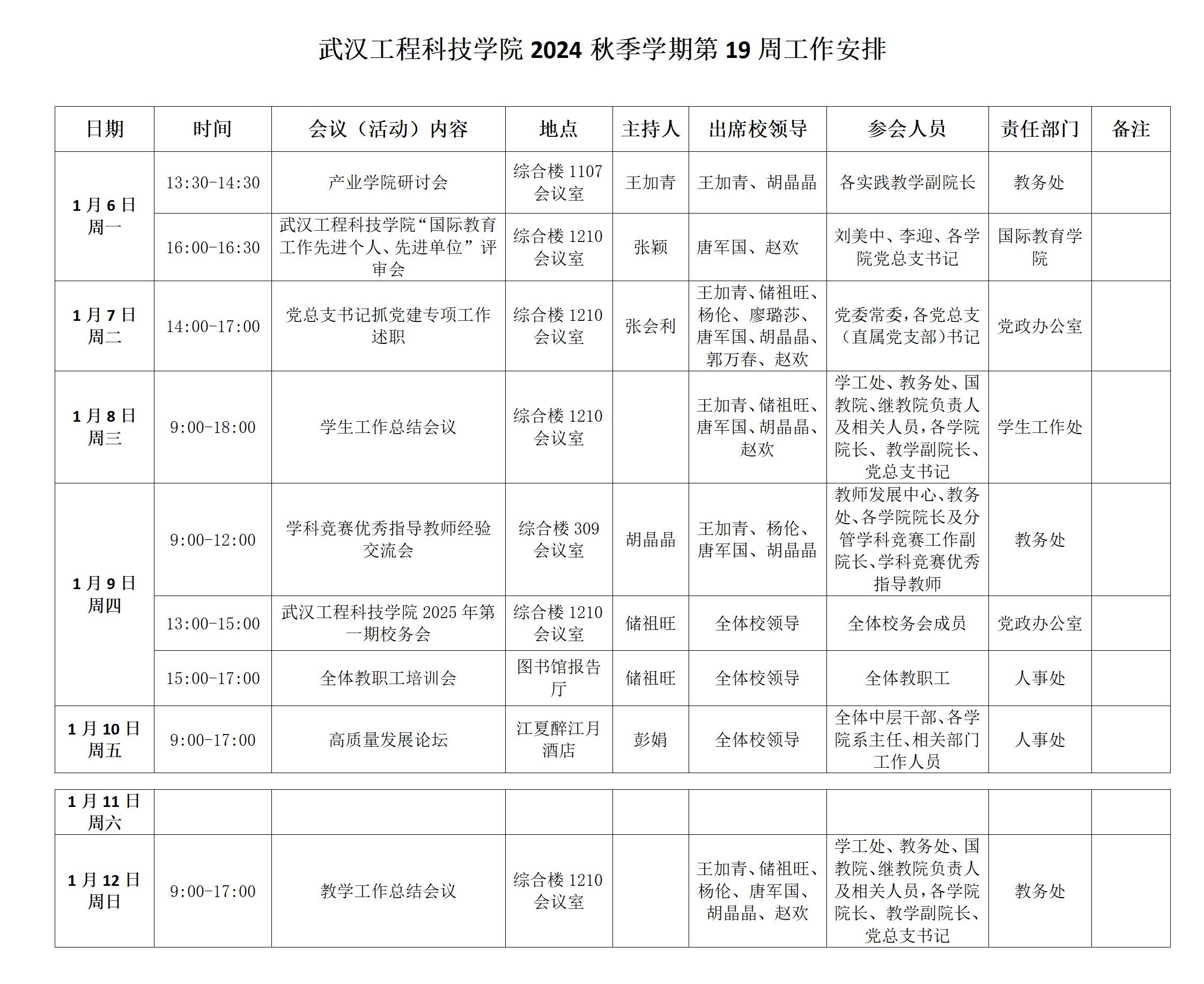 学校2024-2025第一学期第19周工作安排