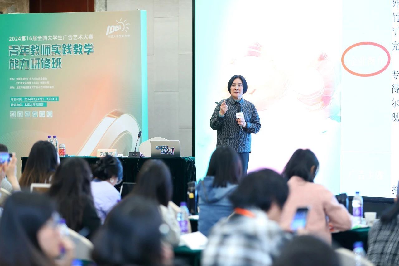 全国大学生广告艺术大赛组委会副主任、秘书长刘瑞武教授以《真题真做的真谛》为题展开分享。她提出,“真题真做”是大广赛创作的精要所在。需把命题企业当成“真”的服务对象;用真心对待命题,真情实意的认真创作。教师要做学生学习知识的引路人,做学生创新思维的引路人,做学生真题真作做的引路人。