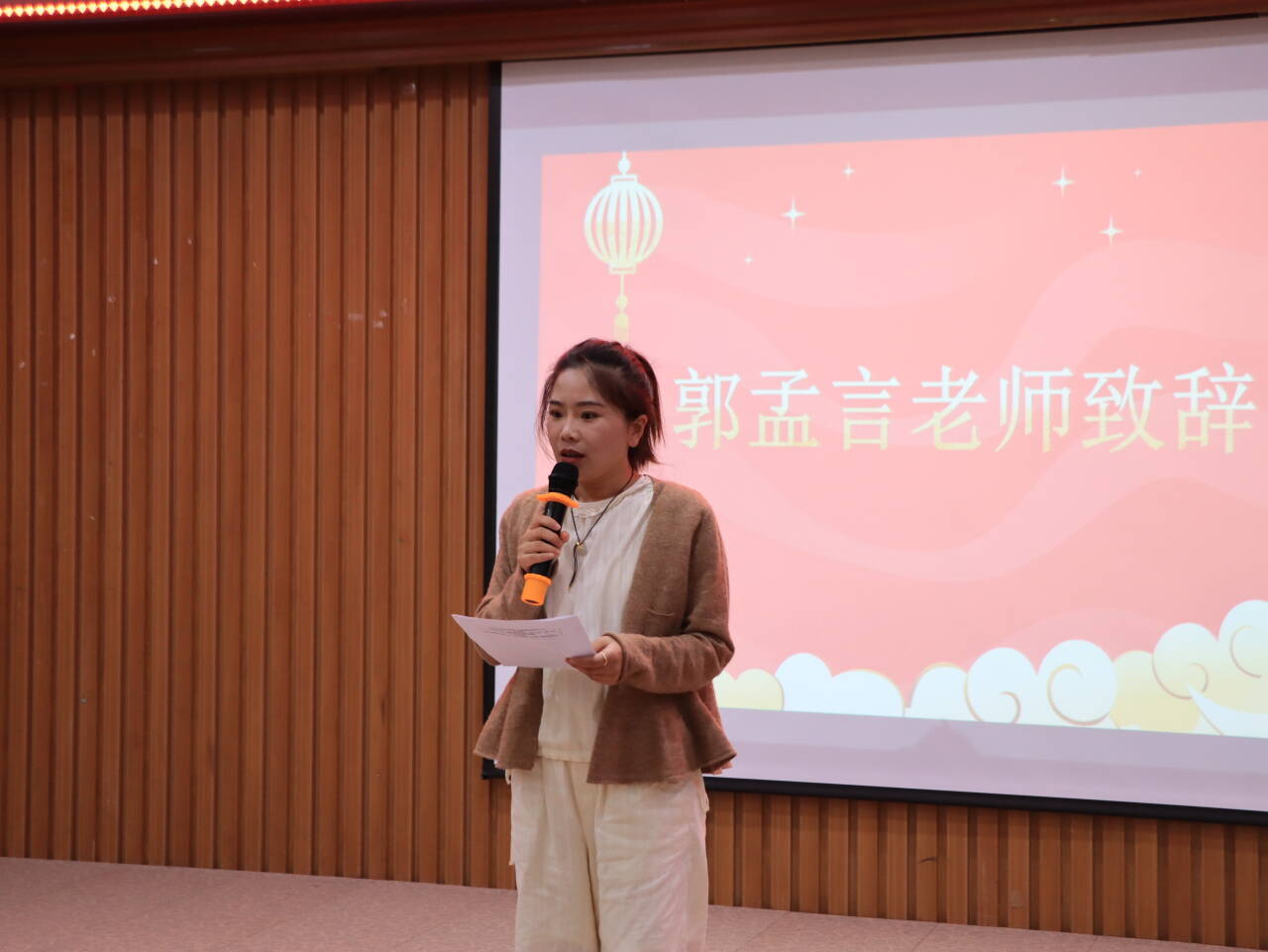 大赛伊始,郭孟言为大家致辞,她对进入复赛的选手表示祝贺并祝愿所有的选手都能取得优异的成绩。她表示无论比赛结果如何,参赛同学都是最棒的。同时,她希望人文学子能够超越自我,提高专业素养和团队合作能力,在未来的学习和生活中取得更加优异的成绩。