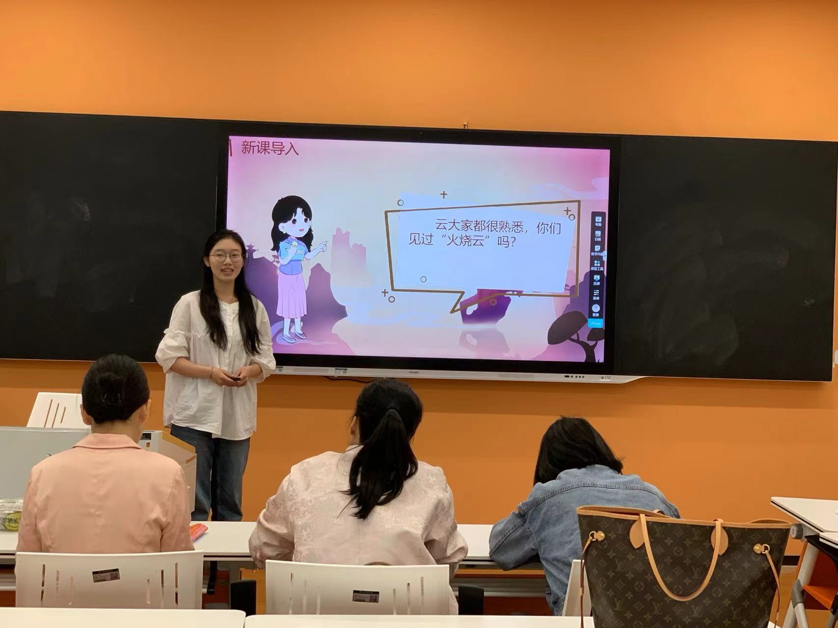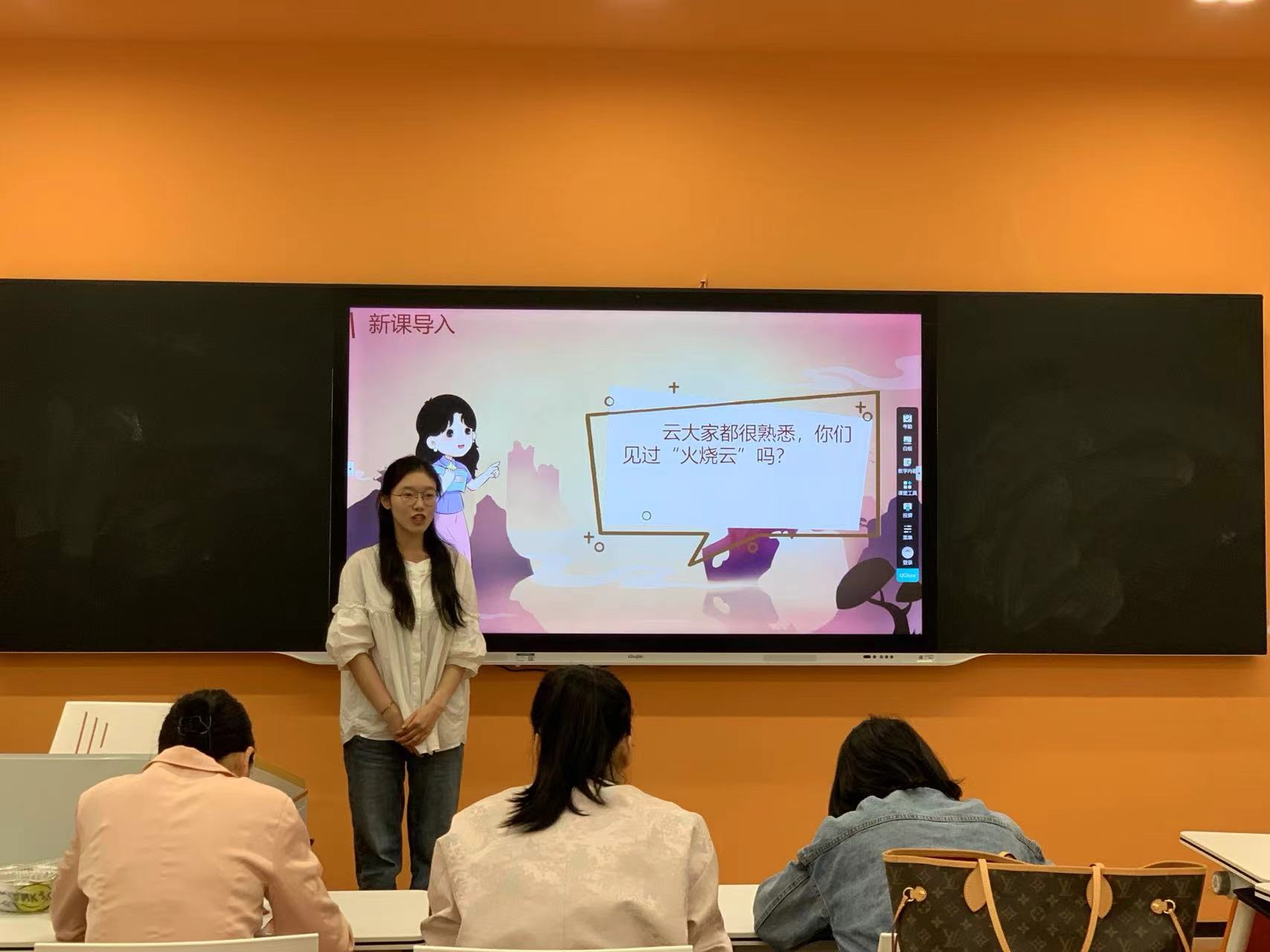 本次比赛分两个组进行,参赛选手是通过教学技能初赛的32位同学。教育系的何忠家、夏露、刘胜男、李航琛、华蜜老师以及中文系赵海艳老师担任此次比赛评委。