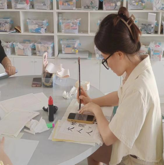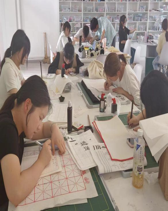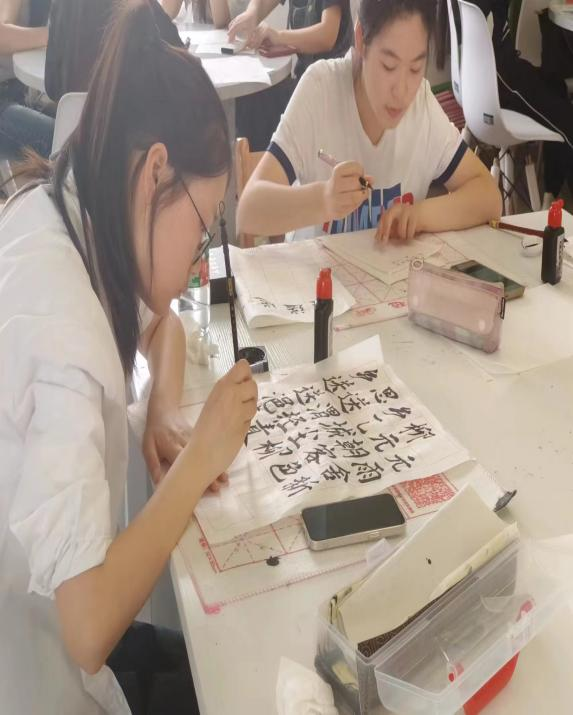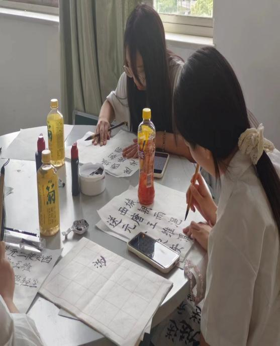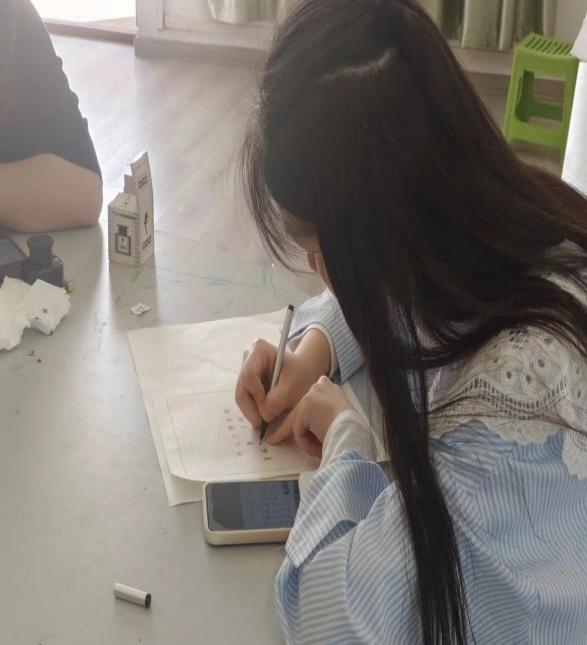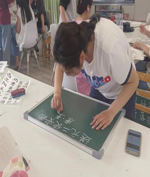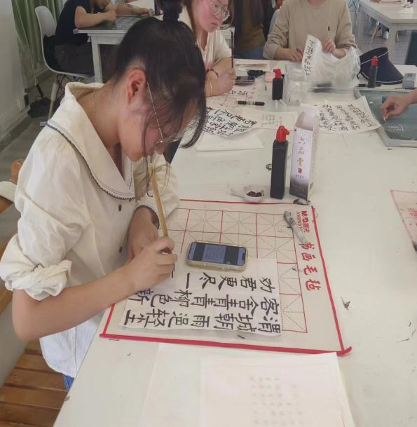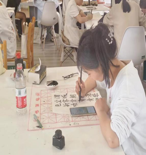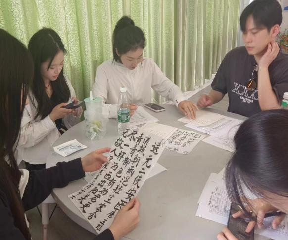 到达现场的参赛选手均为通过三笔字初赛的40位同学,三笔字的书写主题和书写内容由评委老师现场抽选,要求参赛者于2小时内完成钢笔、粉笔、毛笔的书写,肖梦洁、张天成、张田田、汤可四位老师担任本次比赛评委。