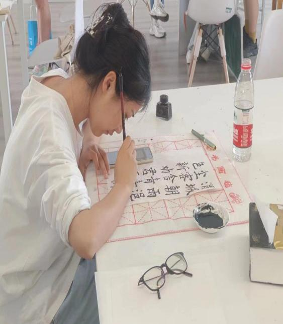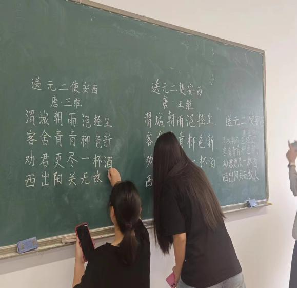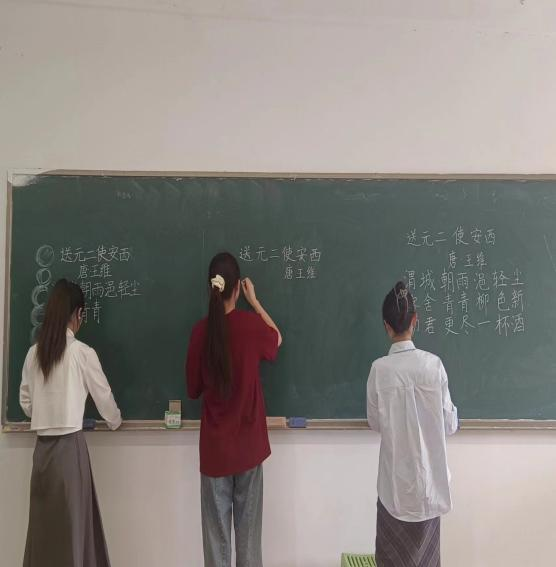 在书写的过程中,参赛选手们将自己置身于诗人所处的情境里,将情感与板书相结合,豪迈、缠绵、豁达尽显在一撇一捺中。选手们坐姿端正、运笔沉稳、屏息凝视,下笔、起笔、顿笔、提笔,挥洒自如,尽显笔锋。在这一张一弛之间,铅墨丝丝浸染着纸张,字形盈盈展现着优雅,汉字之韵就在其中流淌。一幅幅作品美观大方,或清秀雅致,或舒展开阔,彰显了我院师范生良好的书写习惯和深厚的书法功底。