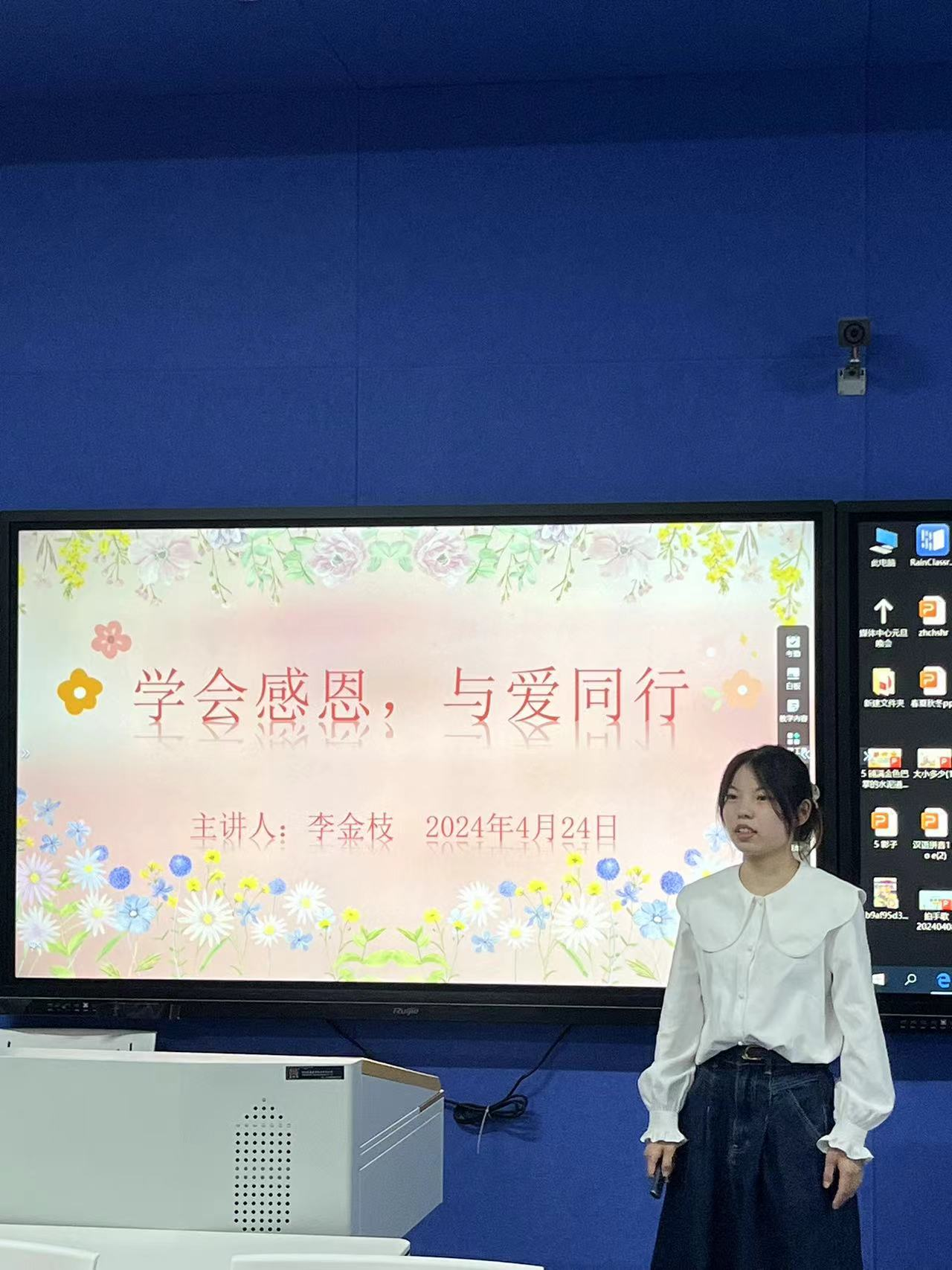 此次活动全程遵循公开、公平、公正的原则。赛前随机抽选一位选手代表,由代表抽取本次活动主题,最终确定比赛主题为“学会感恩,与爱同行”。随后,各位选手根据比赛主题进行班会方案撰写和PPT制作。复赛现场要求参赛选手进行8分钟的说课展示,教师根据方案及说课表现对学生进行现场打分。此次复赛共有13名选手参与,评委团队由教育系的农永艳、王丽彬、周艳三位老师组成。