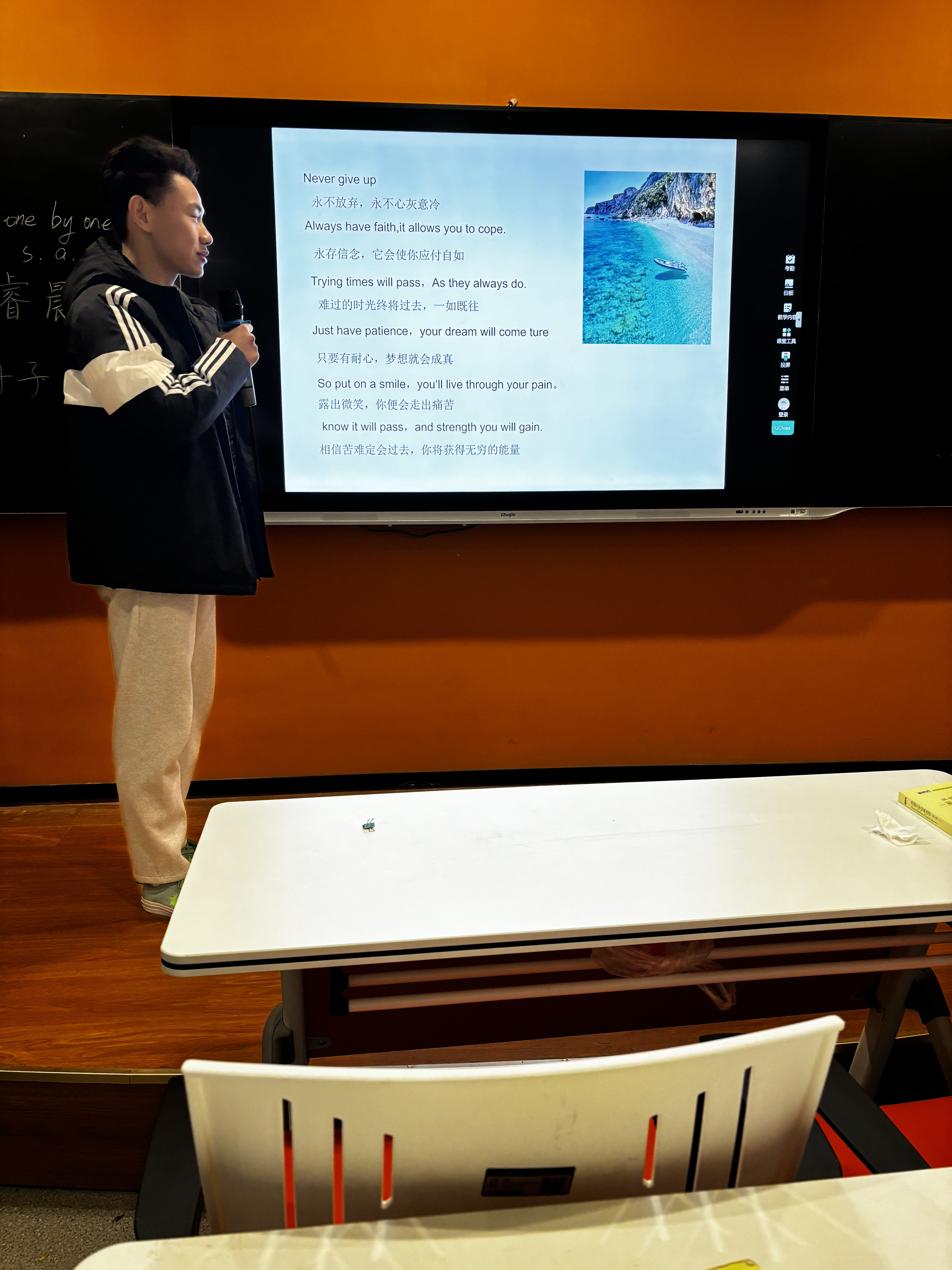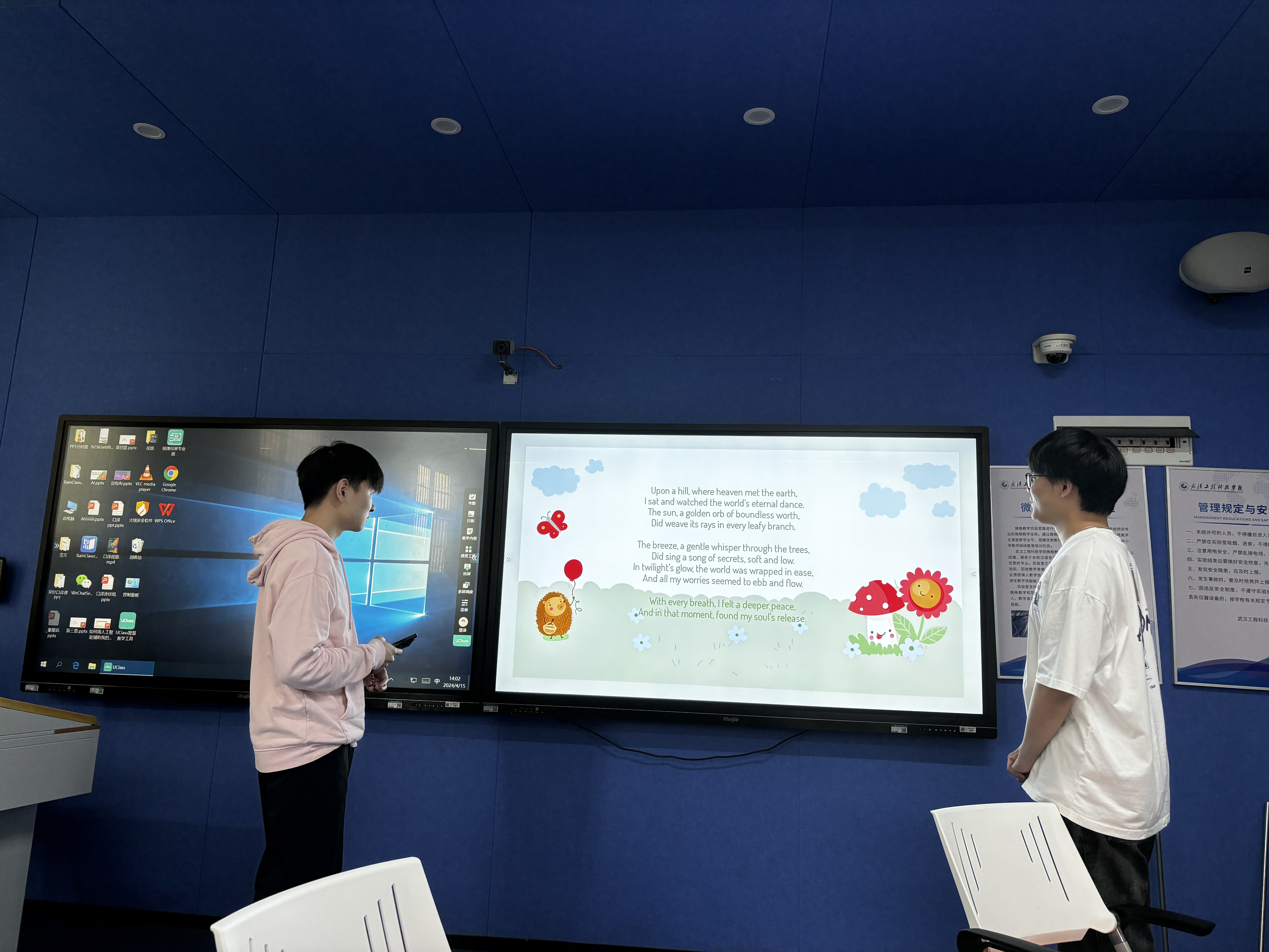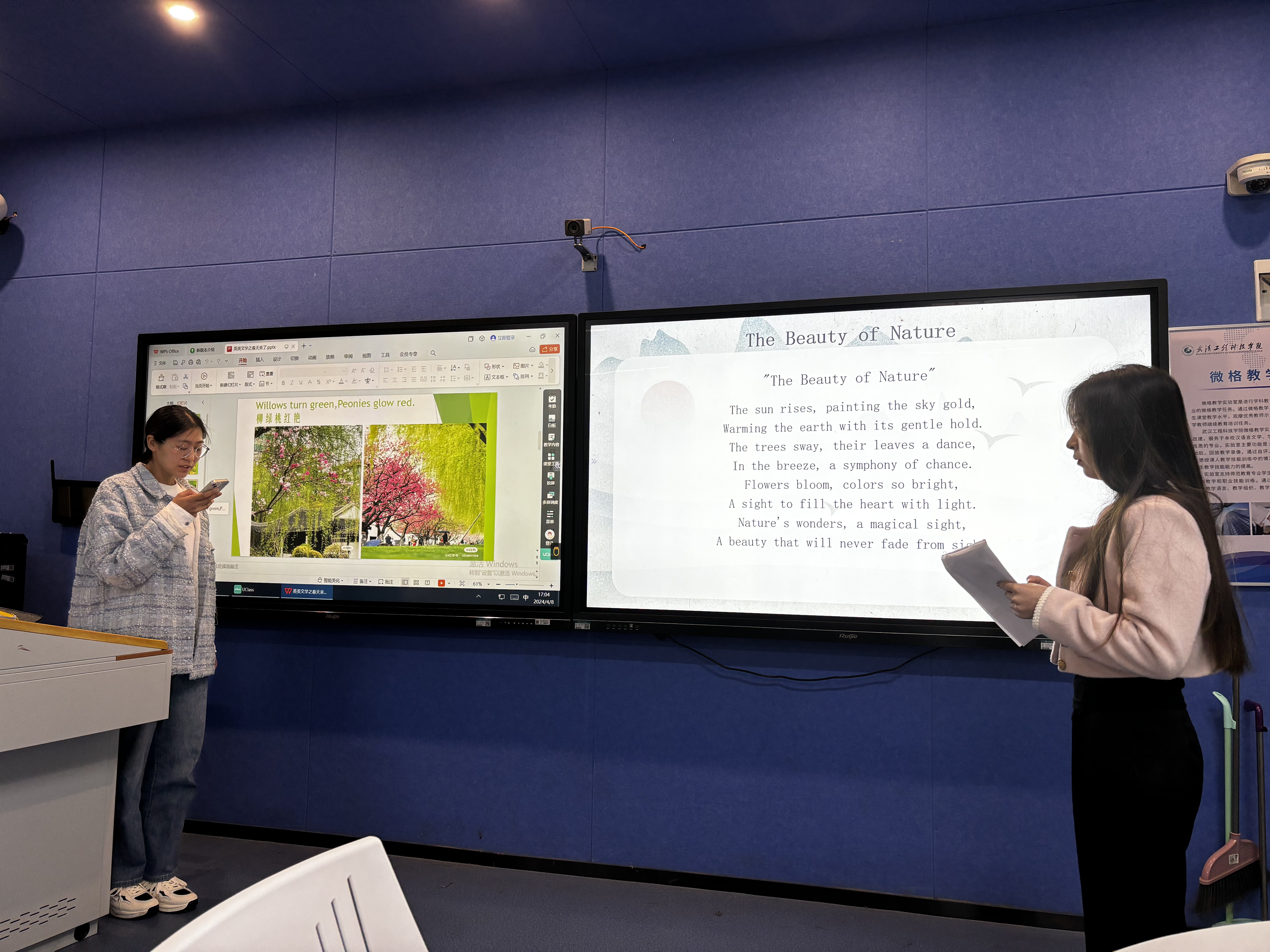 本网讯(通讯员 黄莉)近日,22级商英学生们以“扬青年之志、展青春之姿” 为主题在一教107、109智慧教室开展诗歌欣赏与创作专题交流会。此次诗歌活动是《英美文学经典训练》课程的一次课堂实践活动,旨在培养学生的文学素养和审美能力,激发他们的创作热情。