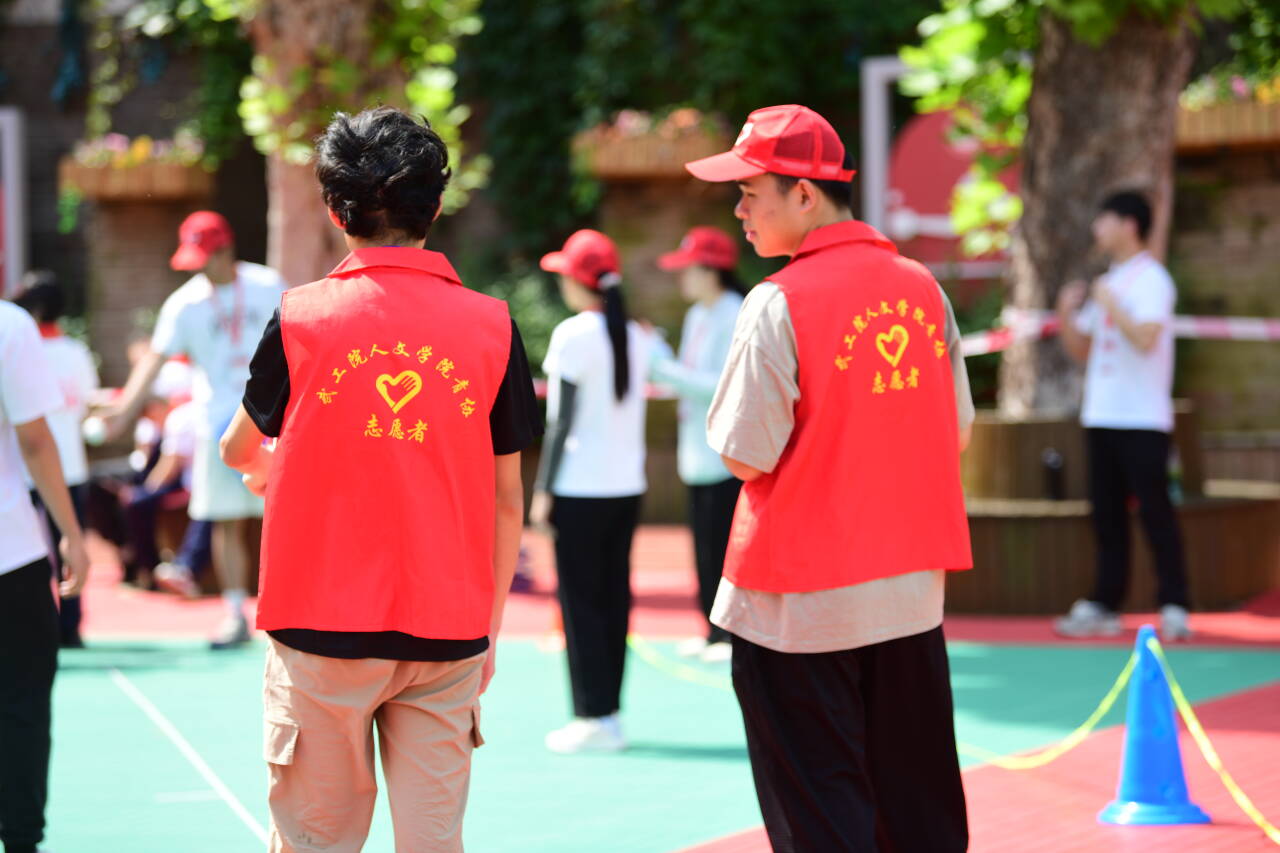 行虽微小,爱乃至大。人文志愿服务队身穿红色马甲忙碌在学校周围,有的一丝不苟维护赛场纪律,有的紧随运动员狂奔拍摄,有的协力搀扶意外受伤人员……人文志愿服务队每一位成员用最负责的态度,最暖心的守护,让校运会的一切都那么有条不紊,一切都那么井然有序。