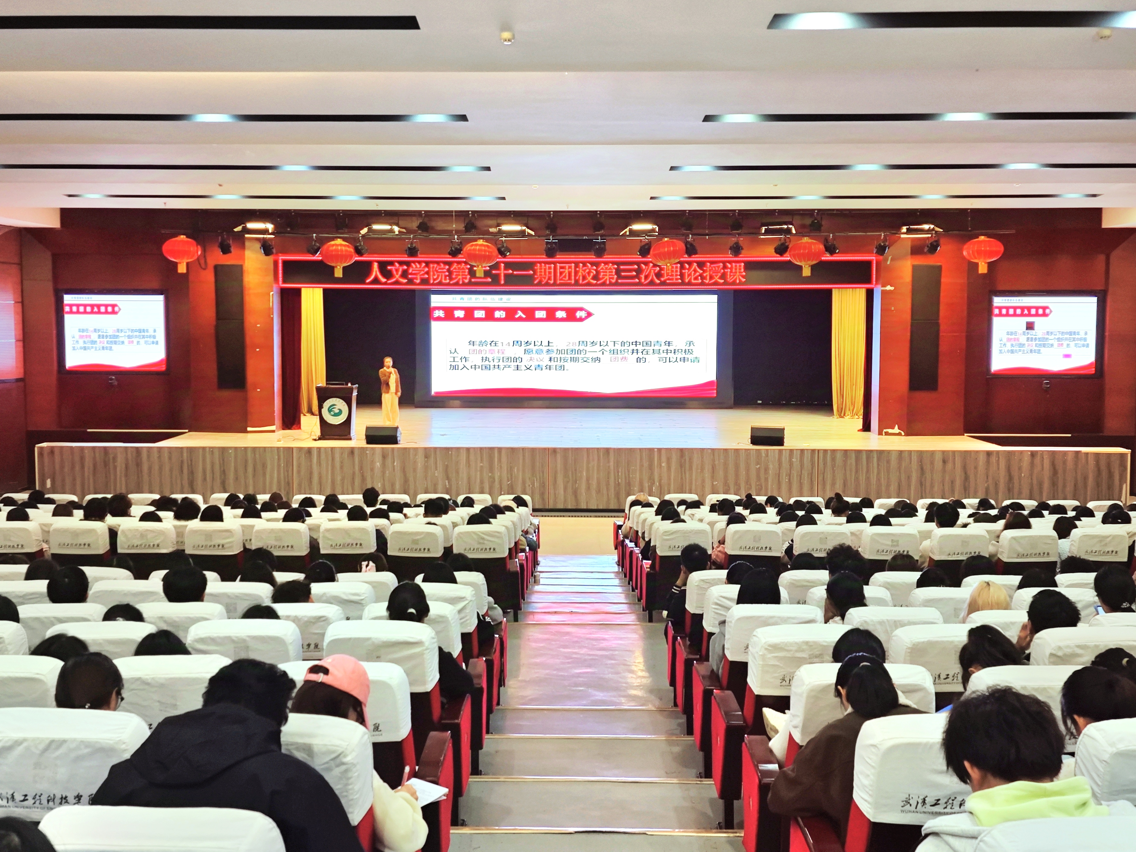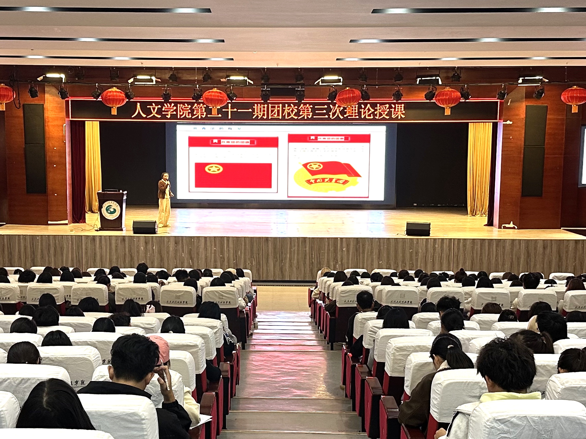 本网讯(通讯员 吴和纬 周诗淇 阮静轩)为了更好地凝聚青年力量,为了培养出有理想、有道德、有文化、有纪律的社会主义建设者和接班人,帮助同学们更清晰地了解和掌握团课团务的重点。武汉工程科技学院人文学院于10月22日在三教报告厅举行第二十一期团校课第三次理论授课。本次团课由团总支书记郭孟言主讲,人文学院团校全体学员参与了本次学习。
