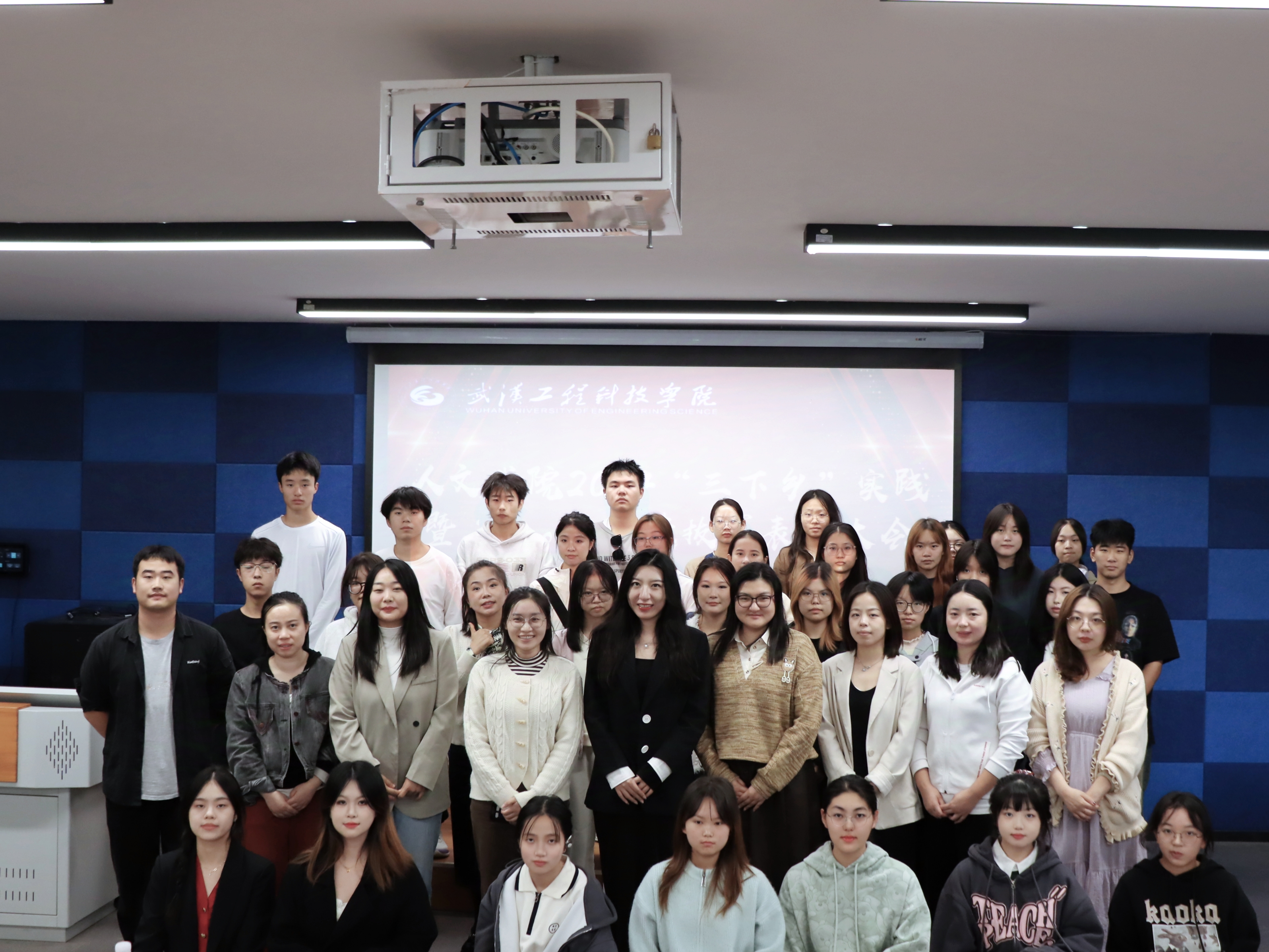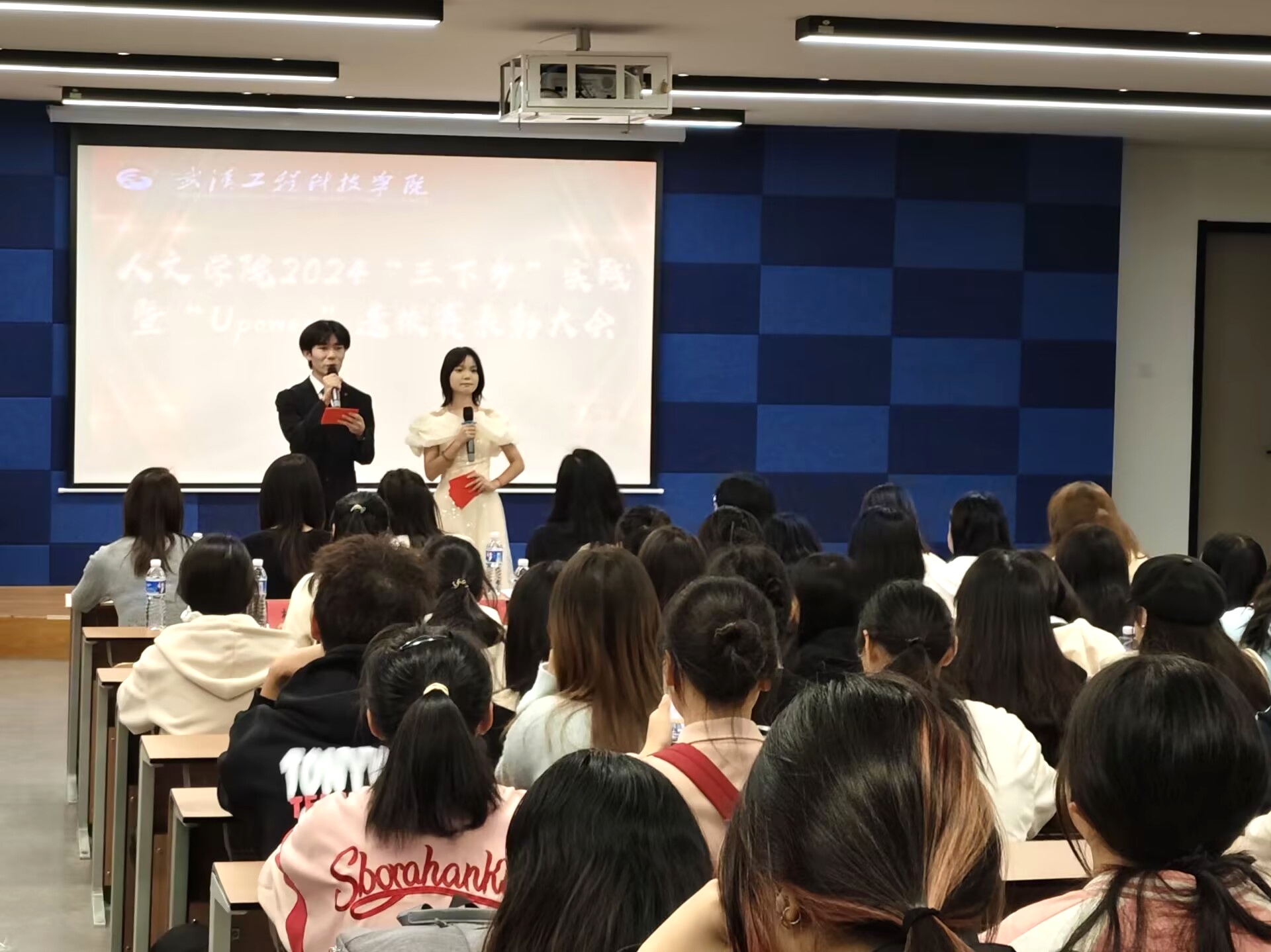 本网讯(通讯员 李博艺 邱媛媛 廖妍 阮静轩)为了给予2024年暑期三下乡社会实践及upower活动中表现优秀的团队、个人充分的肯定和高度的认可,树立同学们的榜样意识,激励其坚定理想信念、在实践中奉献成才,人文学院于2024年10月24日下午14:00在武汉工程科技学院一号教学楼215室举行2024年暑期“三下乡”社会实践活动暨“UPower计划”选拔赛表彰大会。莅临本次大会的领导老师有人文学院行政副院长张冬琦、人文学院团总支书记郭孟言及人文学院的全体辅导员和同学们。