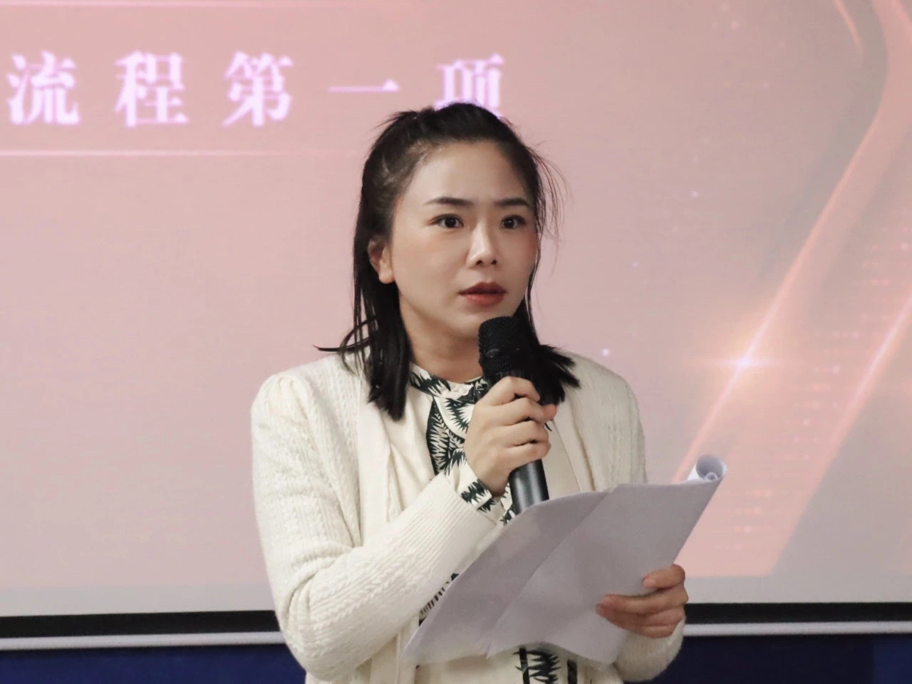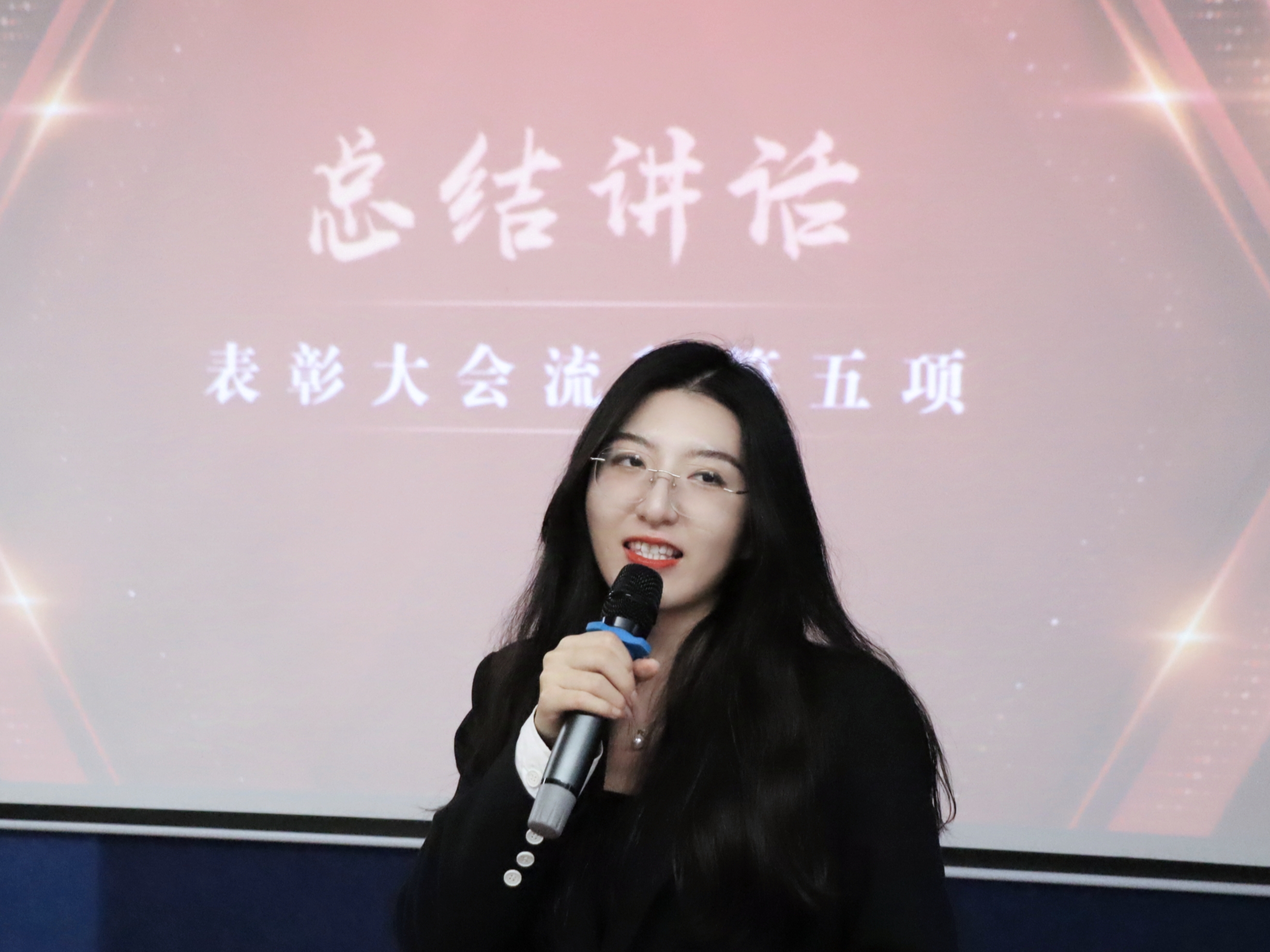 最后,人文学院行政副院长张冬琦书记总结讲话,她首先对荣获奖项的团队及个人表达了诚挚的祝贺,进而勉励全体同学,在未来的大学生活中,要持续不懈地奋斗,勇于展现各自的青春活力与风采,共同书写属于自己的璀璨青春篇章。希望同学们能够珍惜这段美好的青春岁月,不仅仅要在学业上追求卓越,更要在品德修养、社会实践、创新思维等多方面全面发展,立足世界舞台,发出青年声音,要学会独立思考,勇于探索未知,敢于面对困难与挑战,不断磨砺自己的意志与品质。