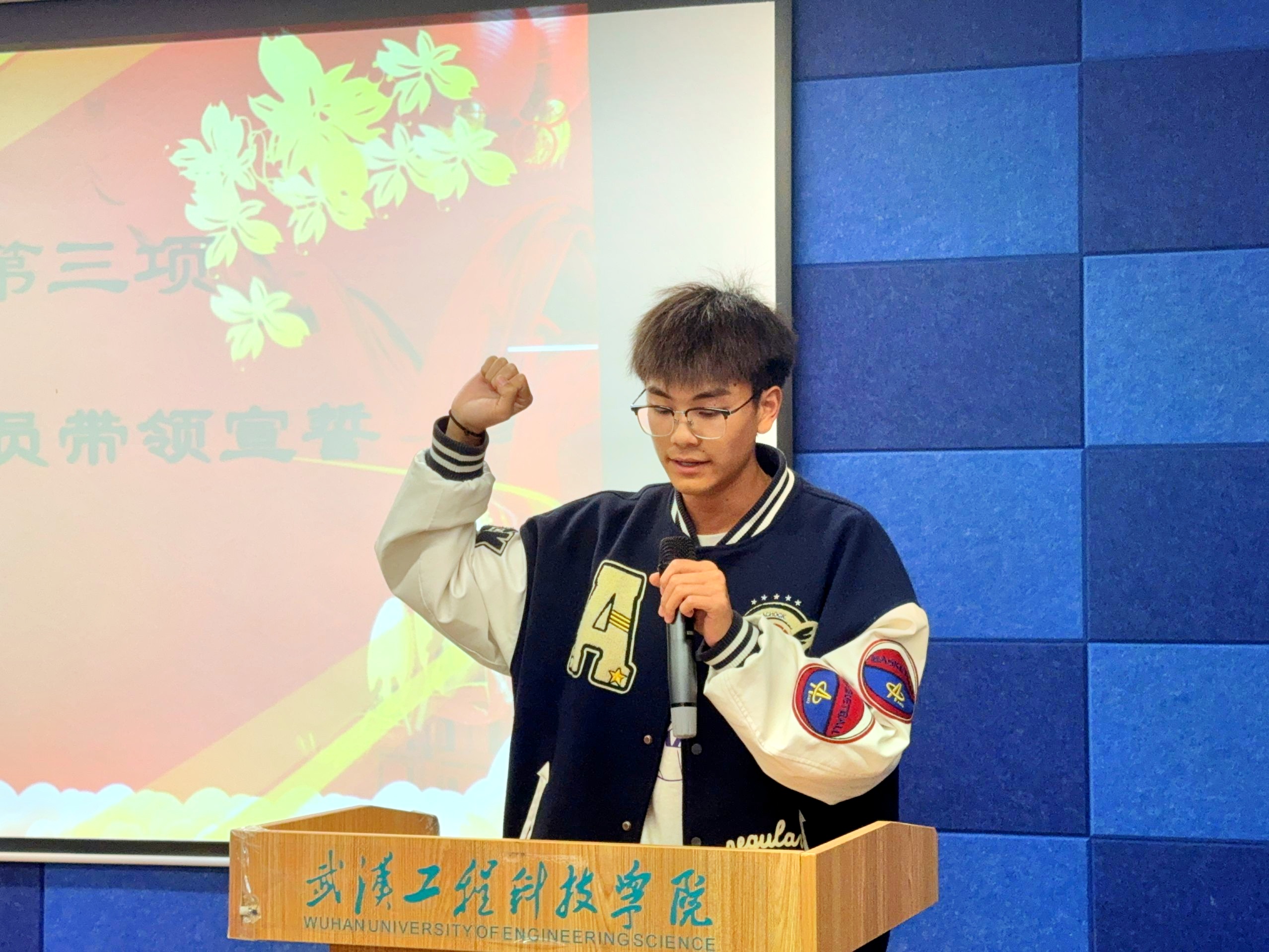 随后,学生运动员代表严明浩上台演讲并宣誓。他表示运动会不仅是一场体育竞赛,更是团结拼搏奋进的精神体现。他希望人文运动员们应以最好的状态全力以赴为学院争光,应以饱满的热情、高昂的斗志、团结的精神迎接这次运动会的挑战。他的庄严宣誓也充分体现了人文学子的体育精神和素养。