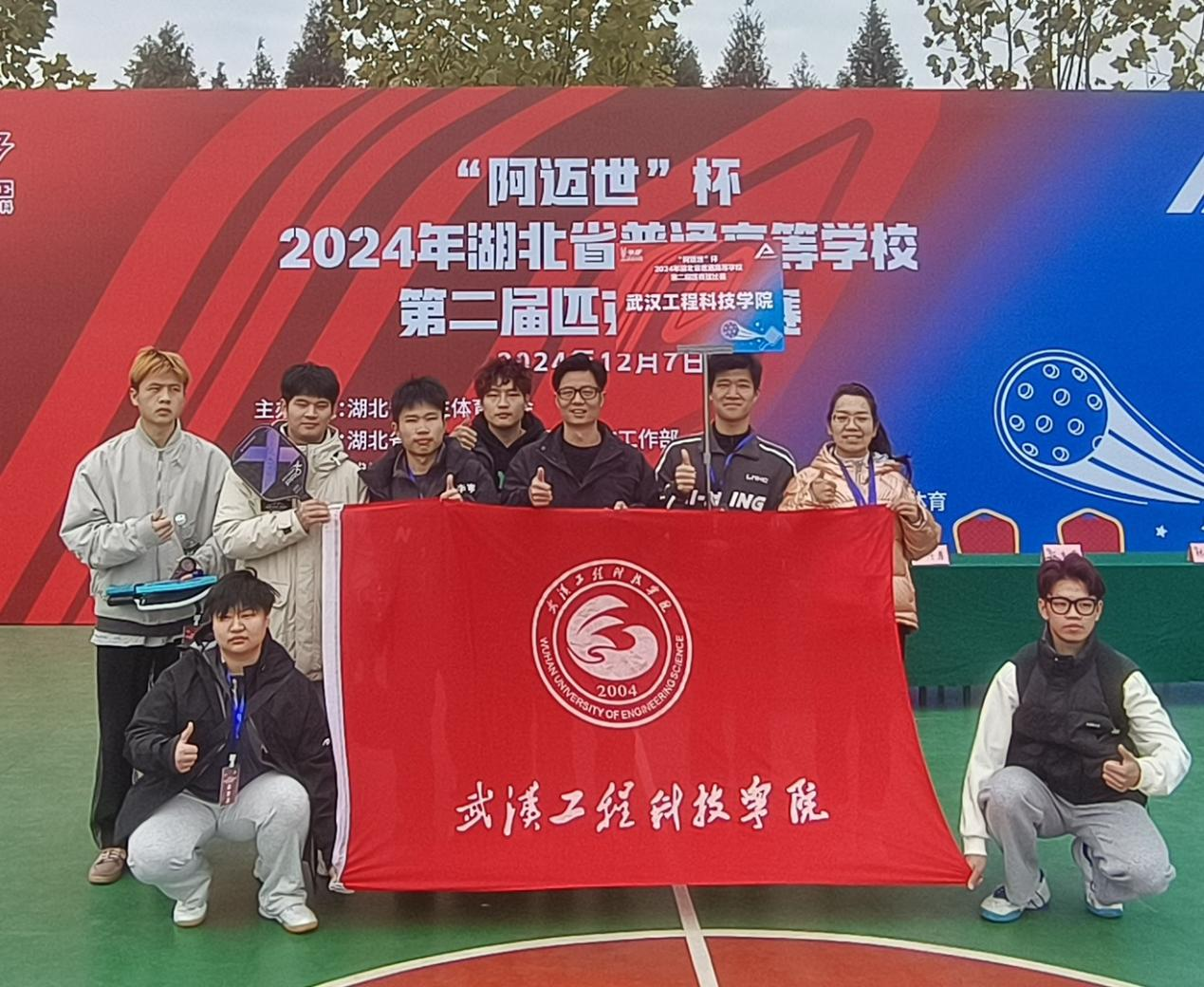 本网讯(通讯员 徐娅妮 陈凤俊)12月7日,“阿迈世”杯2024湖北省普通高等学校第二届匹克球比赛在武汉东湖学院匹克球场火热开赛。此次比赛由湖北省学生体育协会主办,湖北省学生体育协会民办高校工作部执行,武汉东湖学院承办。比赛吸引了来自全省二十多所高校的两百多名师生参赛。我校匹克球校队在领队郭生鼎、教练员易鹏、陈凤俊三位老师的带领下参加了此次比赛。经过激烈角逐,我校李永琪/鲍雷混双组合获得混双第五名。