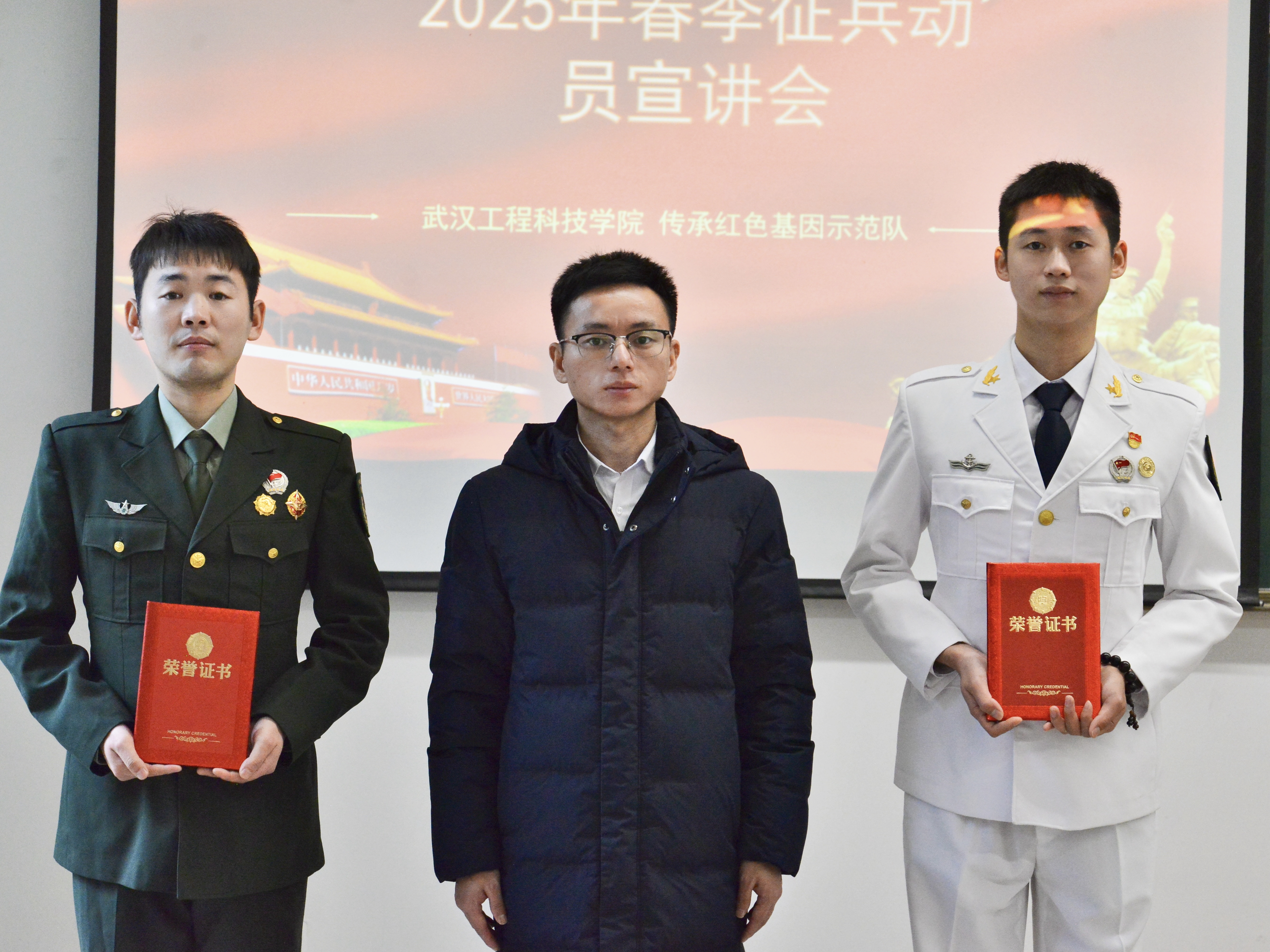 本网讯(通讯员 夏亦菲 李雪婷)为了激发大学生的参军热情,普及征兵相关政策与知识,12 月 11 日下午,我校2025 年春季征兵宣讲会“人文学院”专场在一号教学楼204举行。校征兵办负责人斯序波老师,传承红色基因示范队队长韩卉夫以及人文学院100余名学生出席了此次活动。本次宣讲会由青苗预备队干事万映婷同学主持。