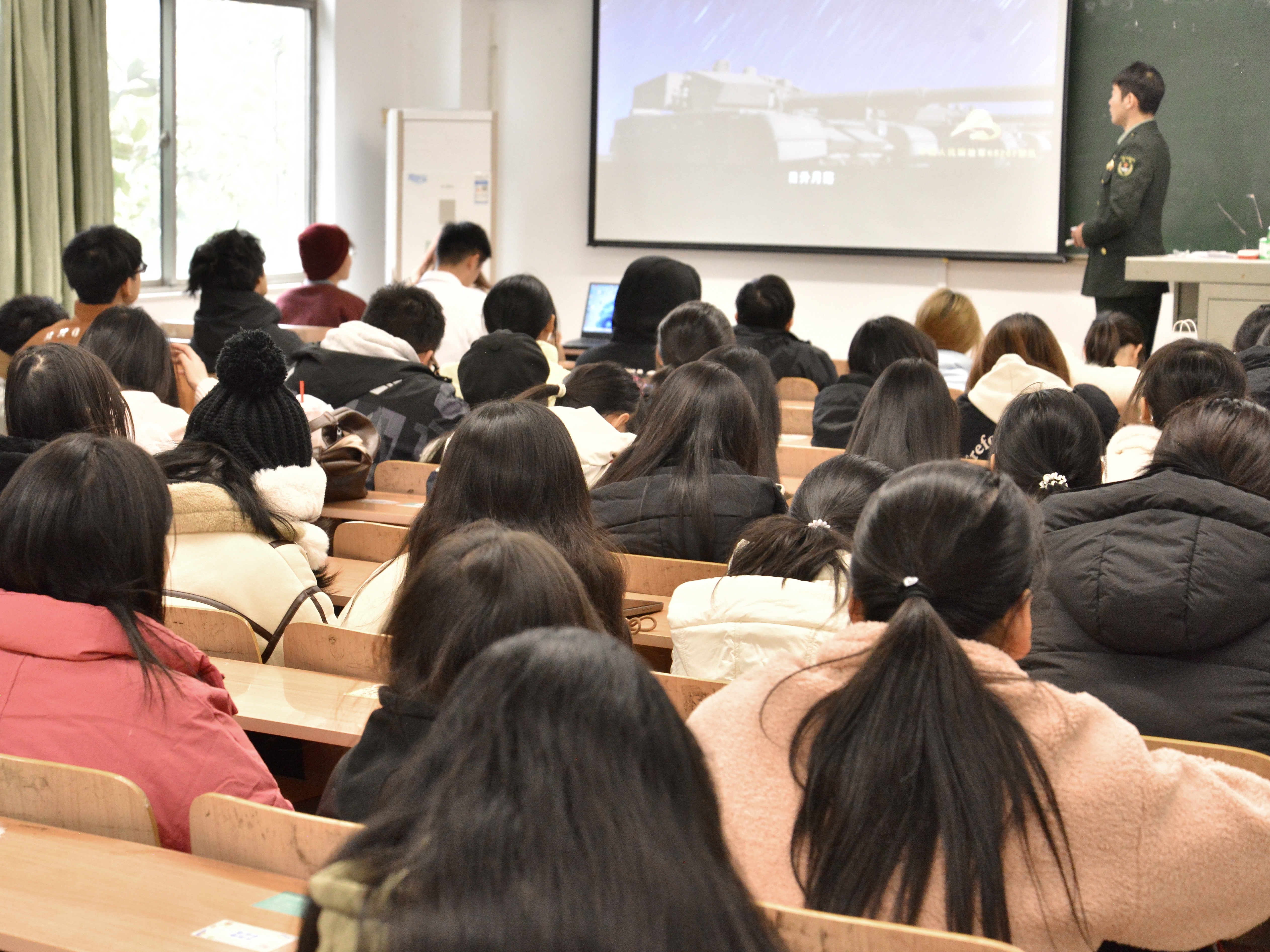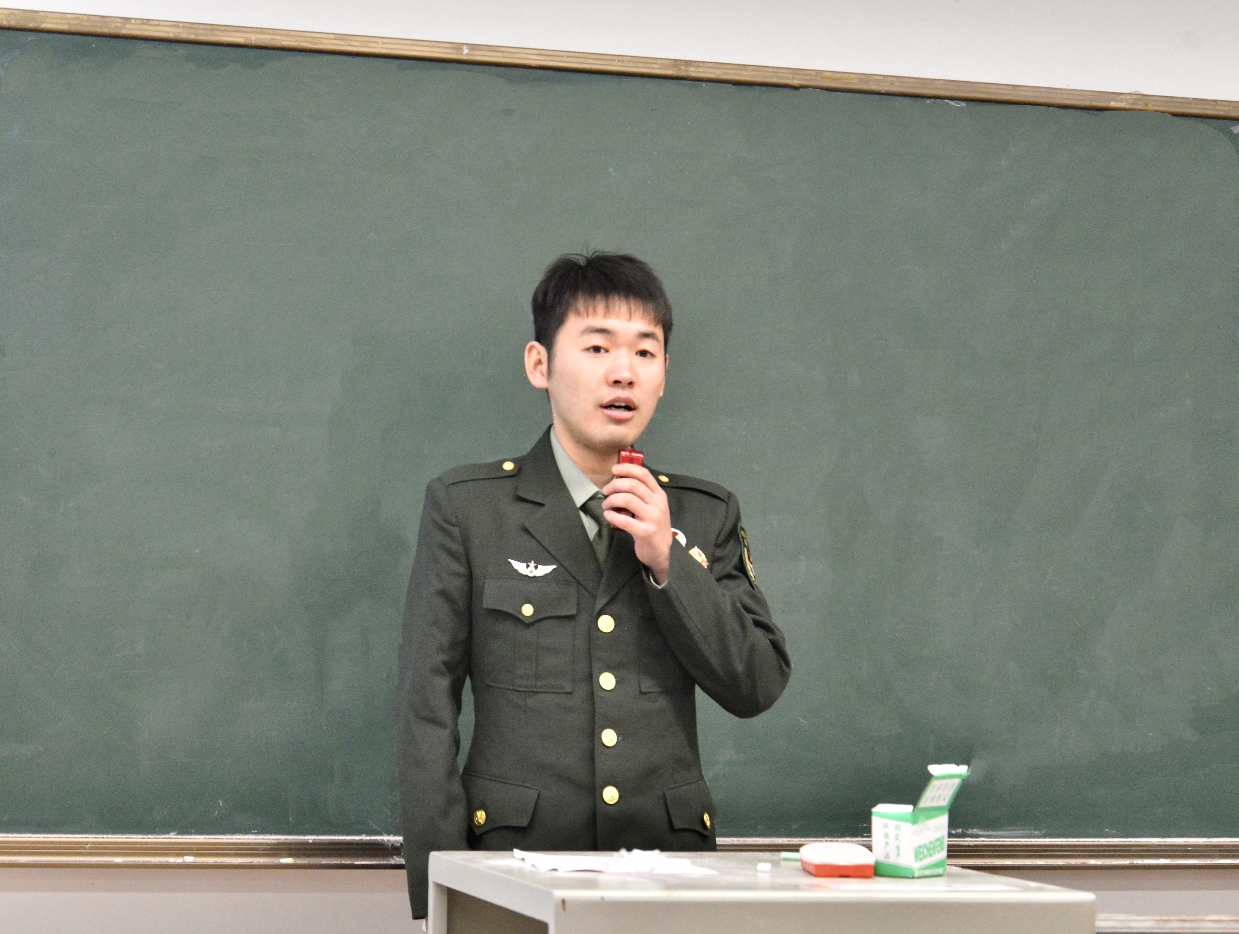接着,韩卉夫详尽的解读了大学生应征入伍相关政策。他以专业的视角,条理清晰地讲解了入伍条件,包括年龄要求、身体素质标准、学业水平规定等;深入剖析了优待政策,如学费补偿、升学优惠、就业扶持等方面的具体内容;还阐述了退伍安置的相关细则,为同学们全面呈现了大学生参军后的保障与发展路径。他的讲解细致入微,为有意投身军旅的同学们消除了政策上的疑虑,指明了前进的方向。