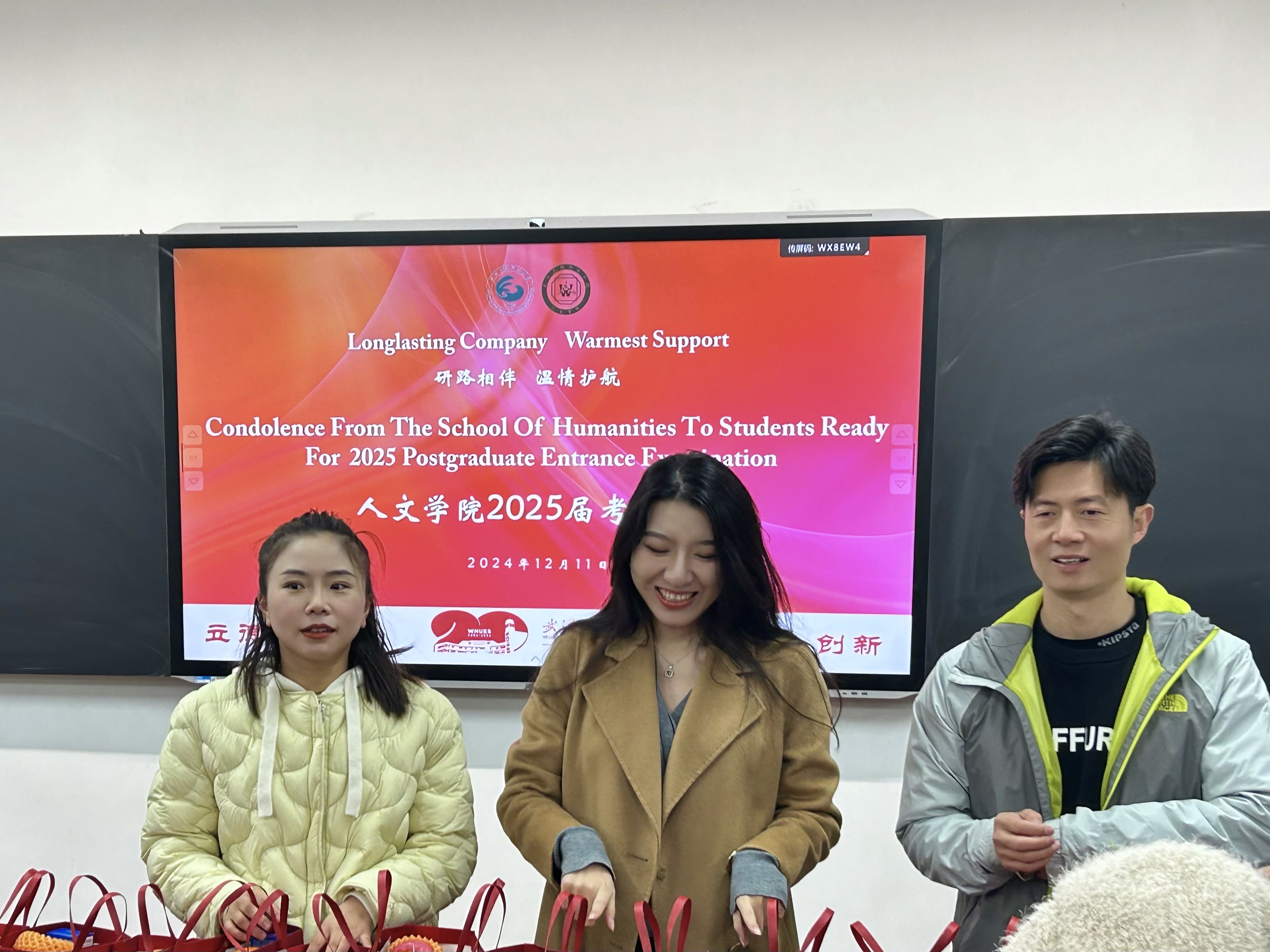长期以来,人文学院对学生的考研工作给予着极高的重视,通过组织多种形式的辅导讲座、经验分享会以及慰问活动等,全面地为学子们提供了必要的支持与帮助。此次考研慰问活动的圆满举行,不仅充分展现了人文学院对考研学生的人文关怀与美好期待,也极大地鼓舞了考研学子们的士气与决心。相信在不久的将来,他们一定能够在考研的战场上披荆斩棘、勇创佳绩。