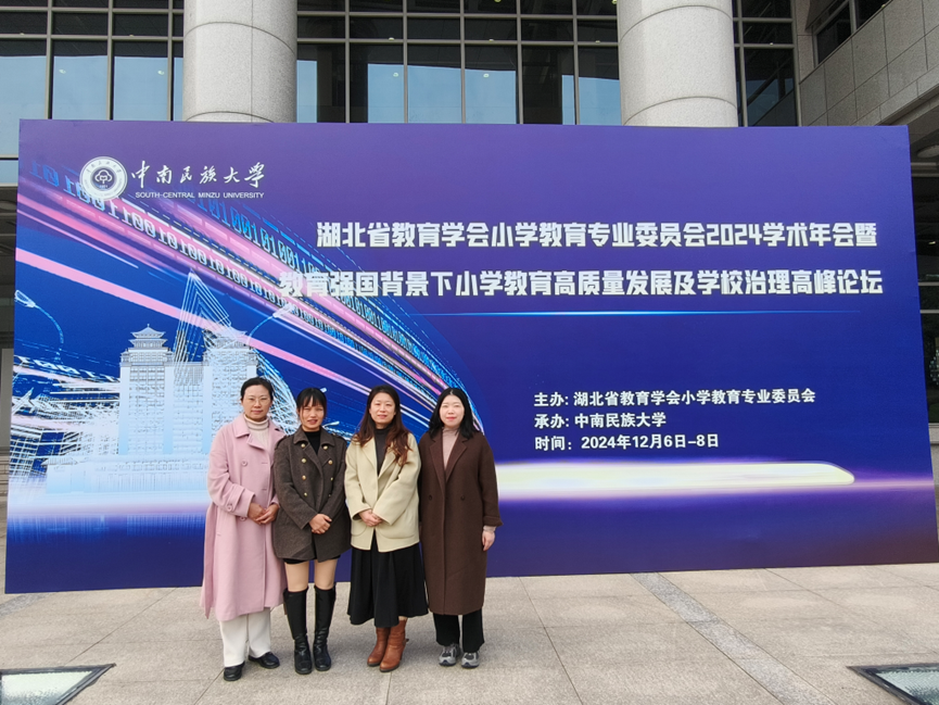本网讯 (通讯员 农永艳)12月6日至8日,湖北省教育学会小学教育专业委员会2024学术年会在中南民族大学成功召开。我院教育系小学教育专业汝利娜、农永艳、华蜜、周艳作为教师代表参加本次小学教育专业年会,共同探讨了新时代小学教育领域的新问题与新挑战,以及小学教育高质量发展的未来发展趋势。