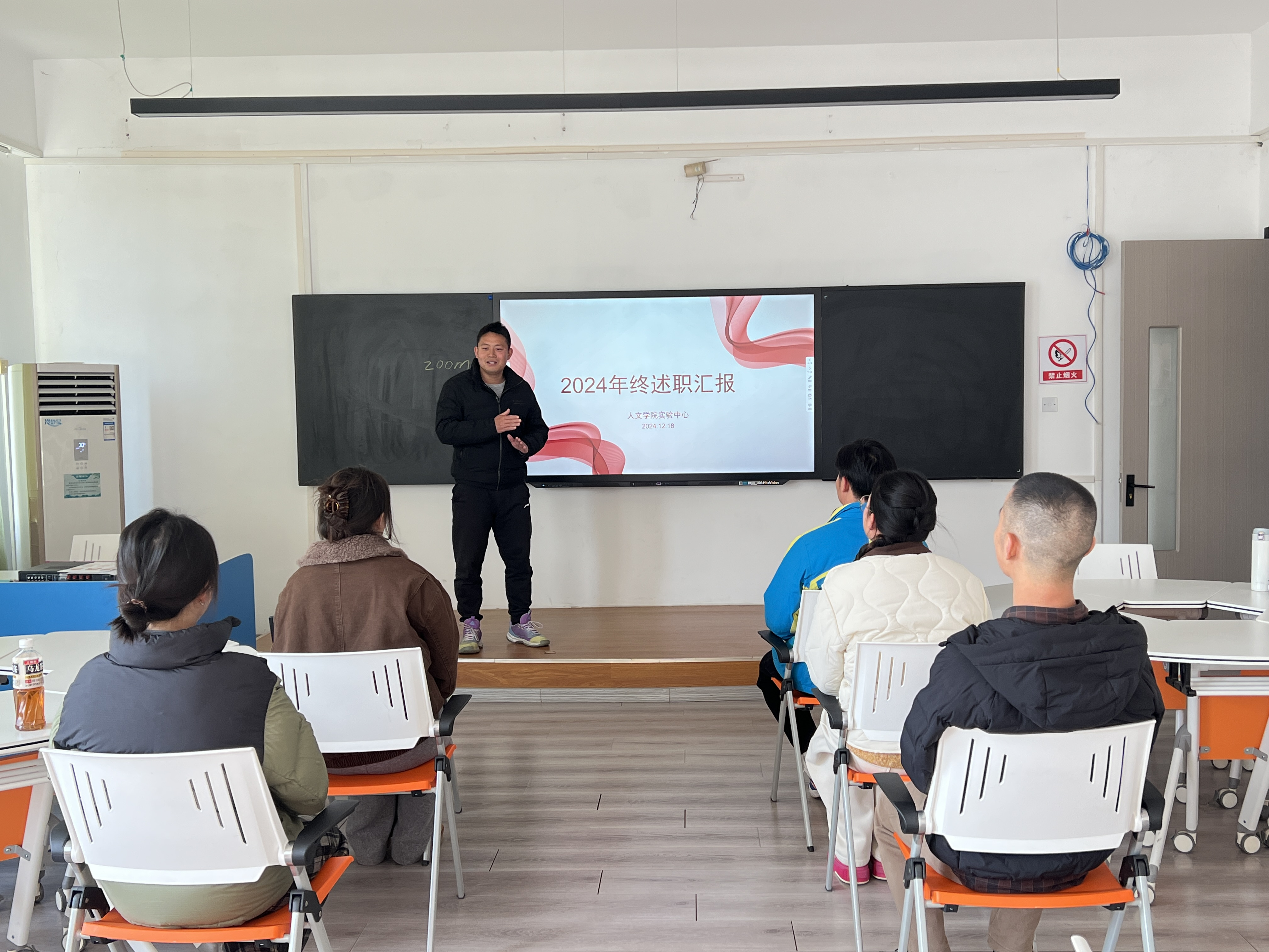 本网讯(通讯员 洪登霞)为全面回顾和总结实验中心2024年工作,挖掘工作亮点,查找工作不足,明确提升举措,助推2025年各项工作,12月18日下午两点在一号教学楼506教室召开了人文学院实验中心年终述职大会,人文学院副院长郭生鼎出席了本次会议,实验中心全体实验员老师参加,会议由实验中心主任毛诚主持。