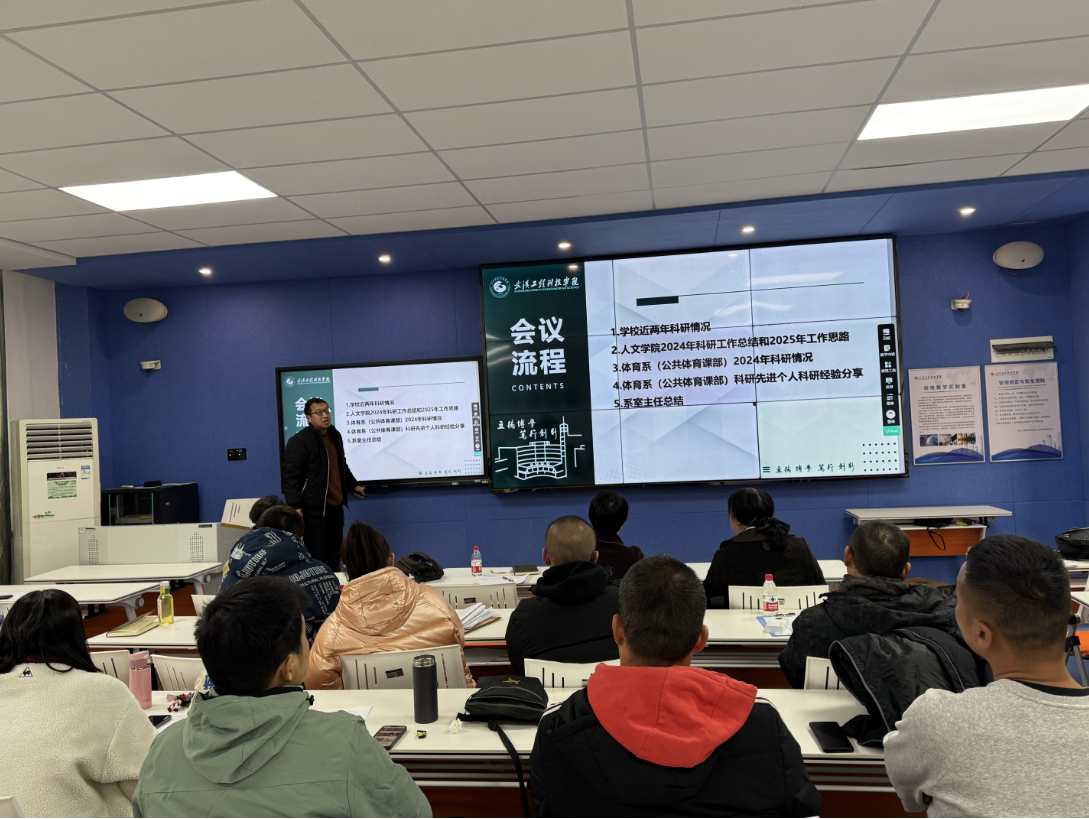 首先,樊哙汇报了学校近两年的科研情况、人文学院2024年科研情况和2025年科研工作思路、体育系2024年科研情况以及2025年的科研计划。