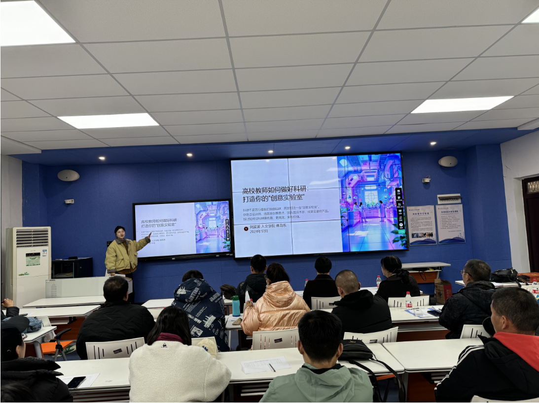 最后,督导处冯光华教授做总结发言。冯光华教授以“科研课题的选择与实施”为题,结合自身丰富的科研经验,深入浅出地分析了科研课题的选择、研究方法、成果转化等方面的问题,为老师们提供了宝贵的指导。