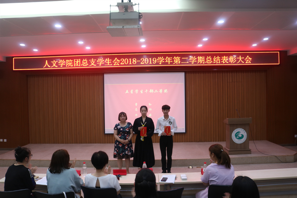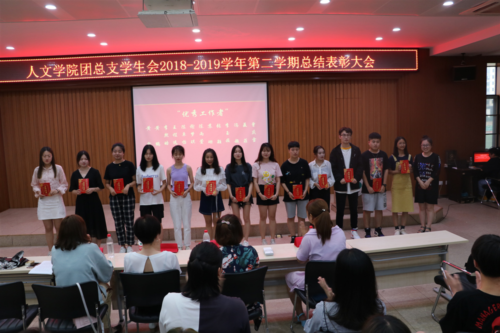 本网讯(通讯员 黄蒂福 苏珊 刘鑫磊 唐容)为表彰先进,树立榜样,2019年6月20号星期四下午18:30,在学生事务中心311,人文学院举行2018-2019学年第二学年期末表彰大会,出席本次活动的嘉宾有党总支书记卢秀丽,团总支书记李英老师,辅导员陆莉、项潇、姜爱婷以及人文学院团总支学生会全体成员。