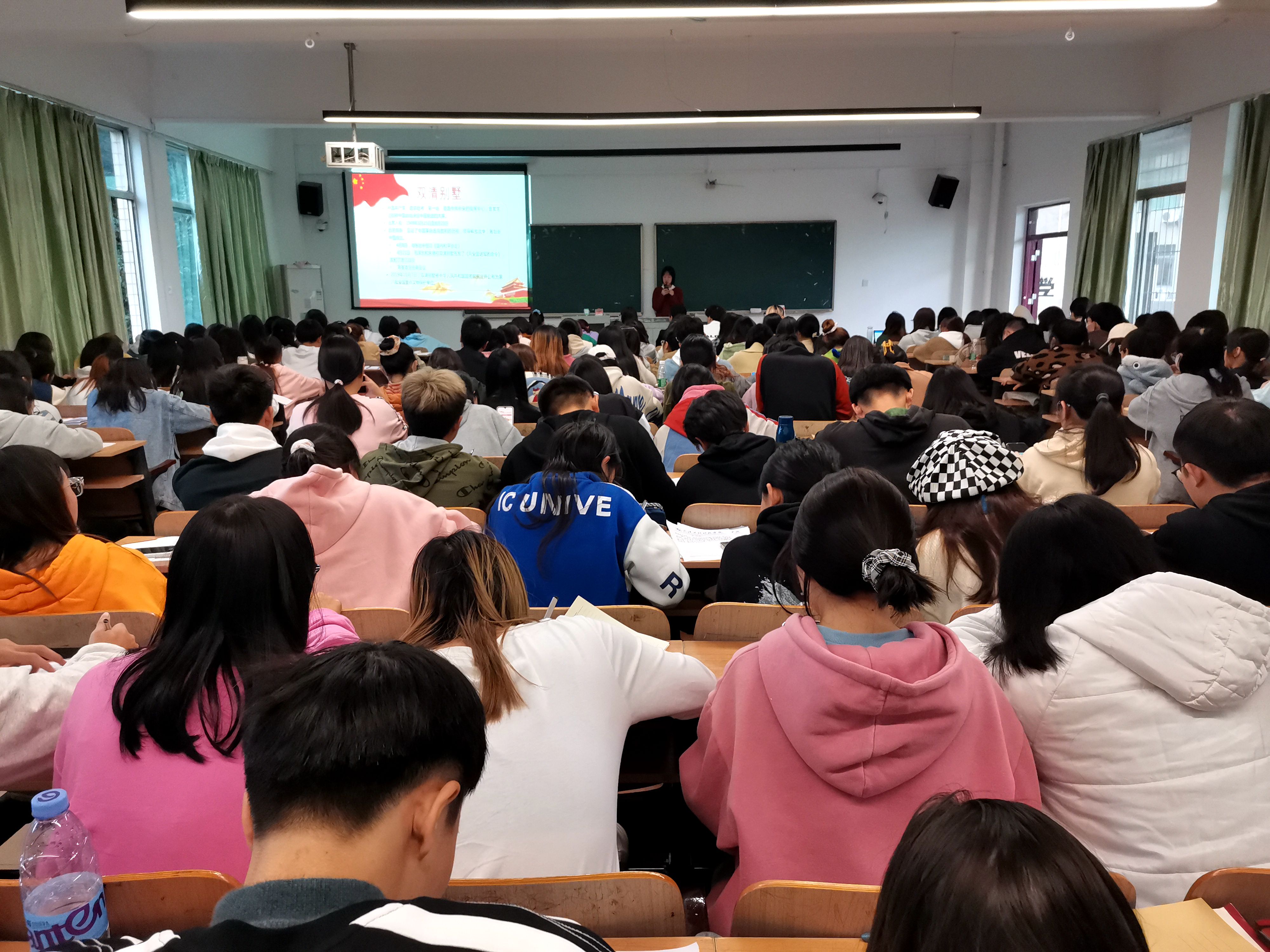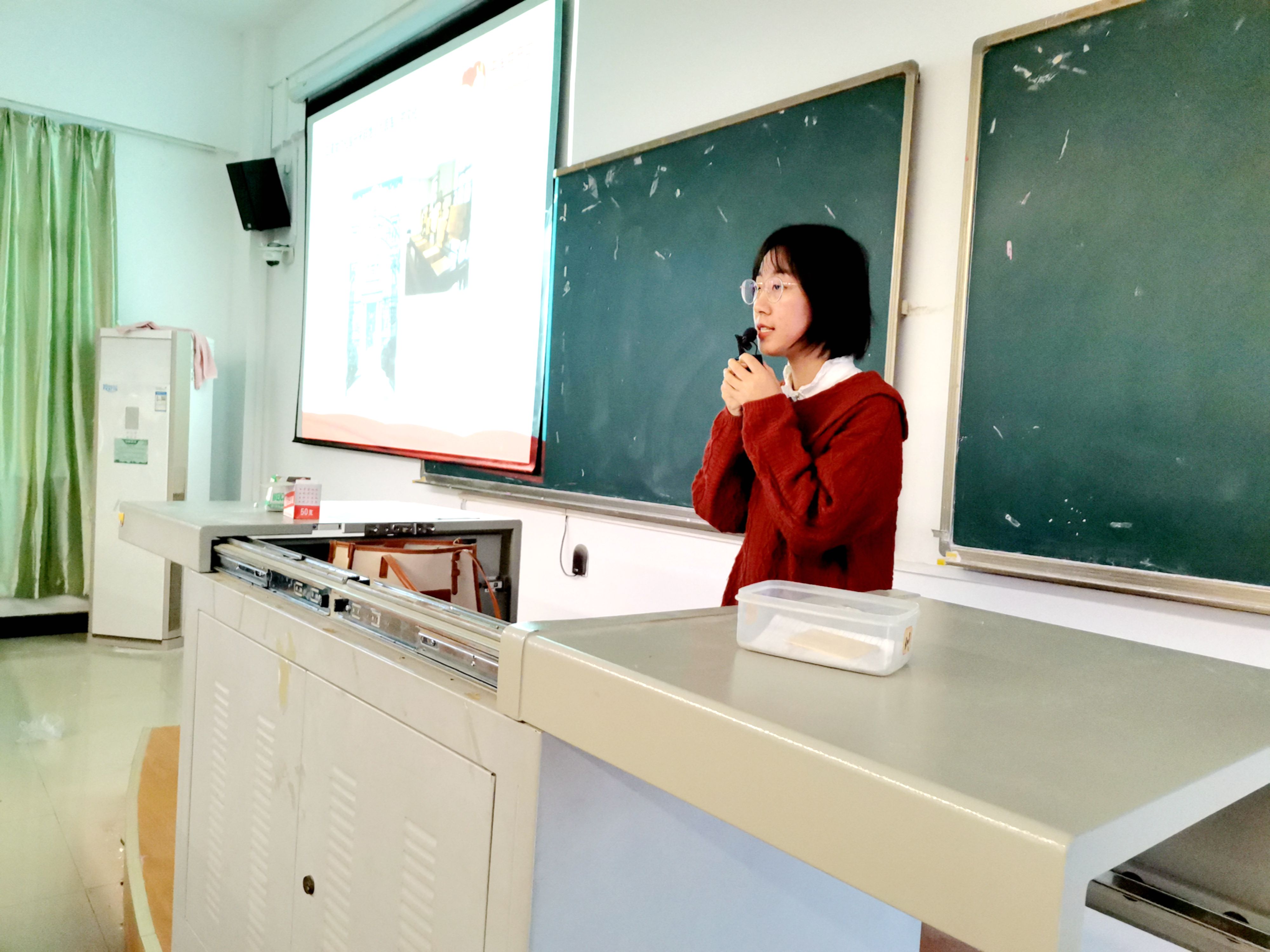 课程伊始,艾露露向在座学生抛出“什么是党史?”这一问题并让学生积极思考讨论。随后,她以“南湖红船”与“双清别墅”的党史背景作为切入点,围绕中国共产党的党史发展历程,向在座学生详细介绍了中国共产党革命文化的形成和发展。艾露露将课程内容分为“革命文化是开天辟地,大浪淘沙的文化”、“革命文化是星星之火,可以燎原的文化”、“革命文化是同甘共苦、鱼水情深的文化”等十个部分,并依据党史形成发展的时间进程,依次对各部分内容进行讲解。接着,艾露露详细讲解了“革命文化”的由来以及其重要意义。她强调,革命文化是中国共产党领导中国人民在伟大斗争中构建的文化,它以马克思主义为指导,以“革命”为精神内核和价值取向,继承中华优秀传统文化,借鉴世界优秀文明成果,是具有鲜明中国特色的先进文化。 为让学生更深刻的理解中国共产党全心全意为人民服务的根本宗旨,艾露露在讲到“革命文化是同甘共苦、鱼水情深的文化”这一内容时,为在座学生分享了一则名为《半床棉被》的红色经典故事。“我们的红军在自己缺吃少穿的艰苦条件下,心里还想着老百姓的冷暖,这更加体现了中国共产党始终将人民放在最高位置,一切为了人民,一切依靠人民。”艾露露说。 授课期间,艾露露常引用习近平总书记的重要讲话内容,在向学生介绍早期优秀党员前辈献身建党事业的英雄事迹,宣传长征精神、延安精神等一系列红色革命精神的同时,她也希望在座学员能学习前辈的吃苦耐劳精神,坚定信念,积极投身于党的事业。