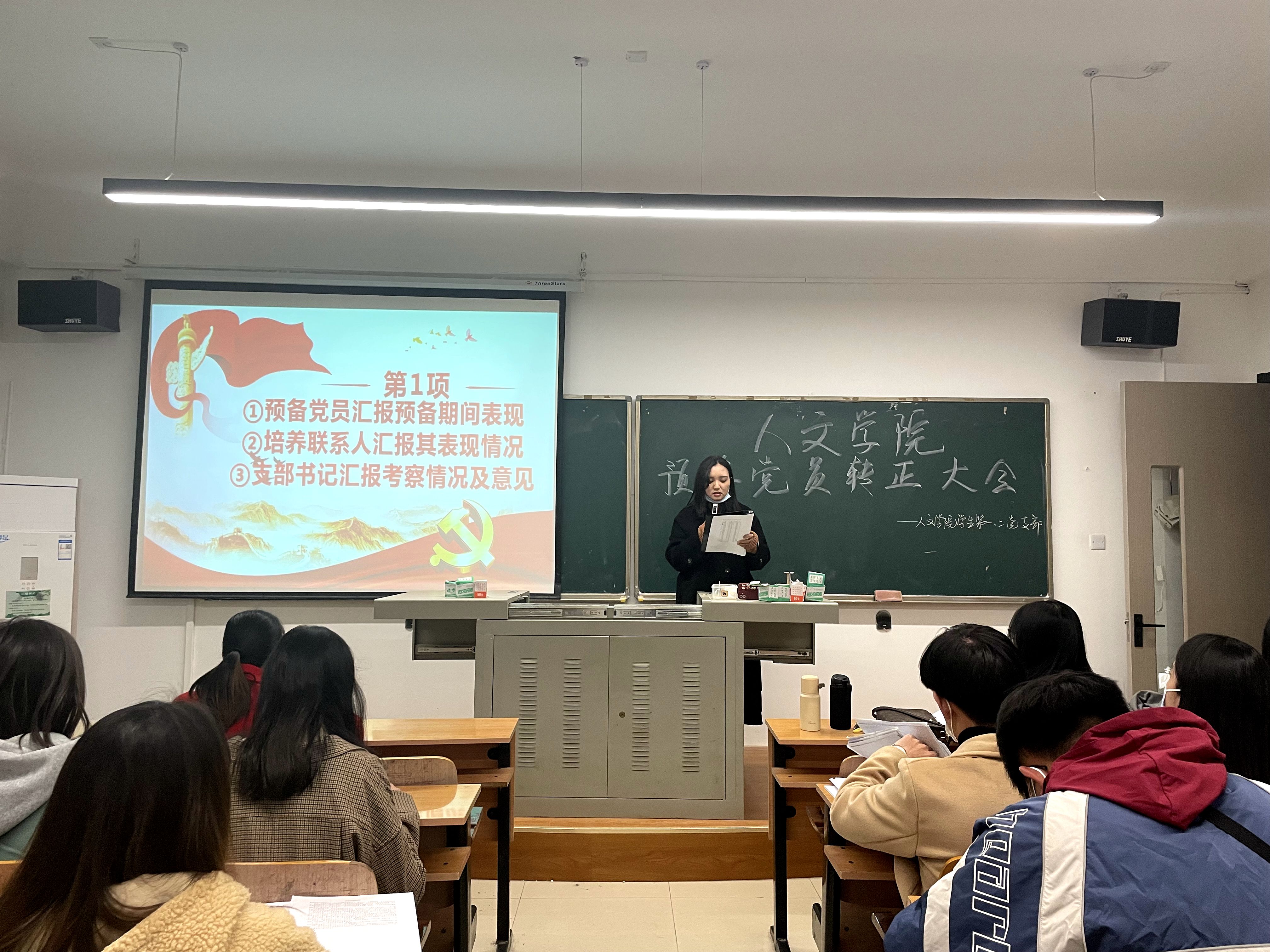 本网讯(通讯员 周思雨 贾维凤)人文学院预备党员转正大会于12月1日在一教310教室召开。大会由人文学院第二党支部支部书记张月潆主持,人文学院党总支学生第一、二党支部全体正式党员和预备党员参加了会议。