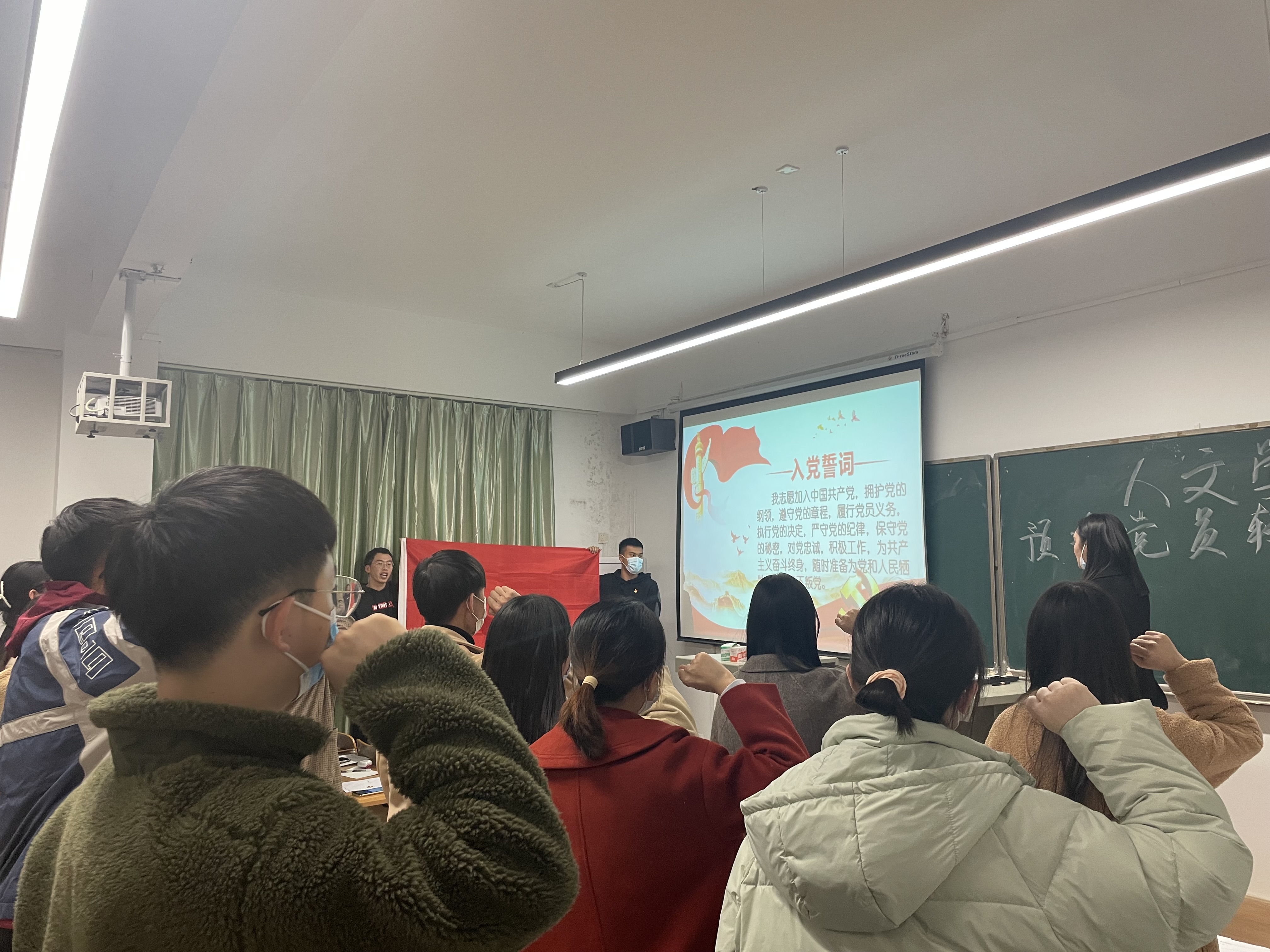 经人文学院党总支学生第一、二党支部委员会研究,推荐曹志华、曹莉君、冯雨等三名同志为监票人、唱票人和计票人。随后与会党员发表意见,拥有表决权的党员对预备党员进行投票表决。经正式党员的一致表决,我院共有22名预备党员顺利通过党组织审核,成为正式党员。最后支部新纳入的22名正式党员进行入党宣誓,表明她们的决心,并以此为力量,不断鞭策自己。