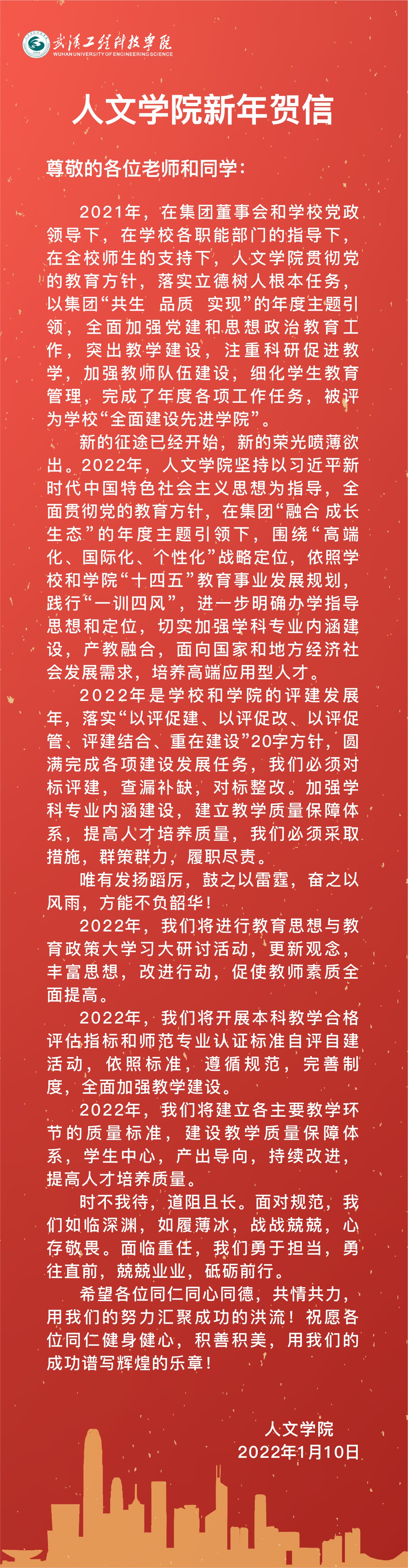 人文学院新年贺信