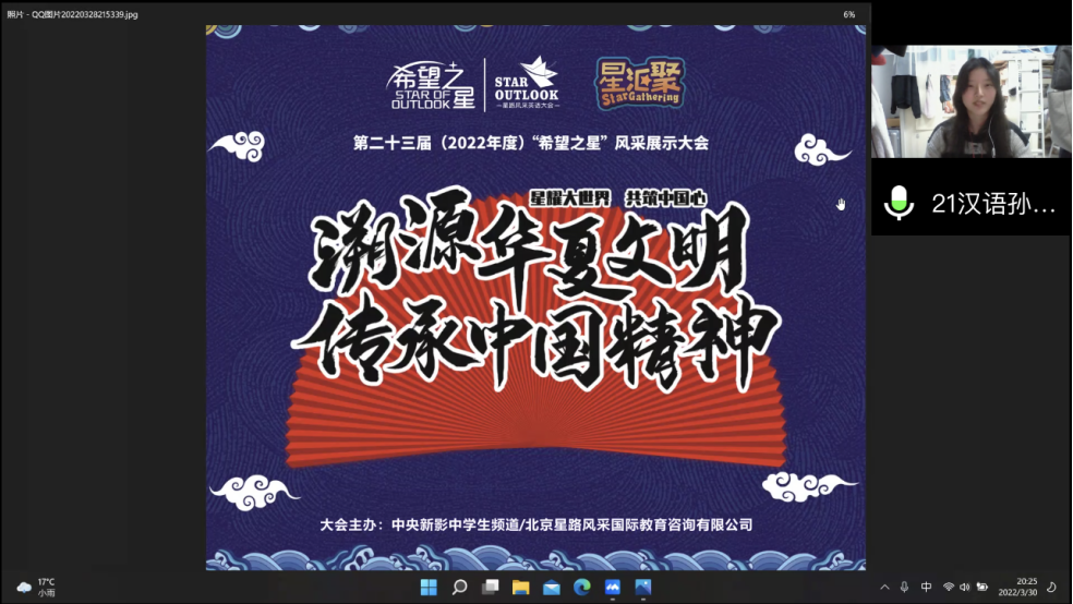 本网讯(通讯员罗莉、王静)2022年3月30日19:00点,“希望之星”英语风采大赛武工院初赛在腾讯会议正式揭开帷幕。由于疫情原因我们采取线上模式进行比赛,本次比赛邀请到罗莉教授、孙川慧副教授、王莹副教授和周芬副教授担任本次比赛的评委。