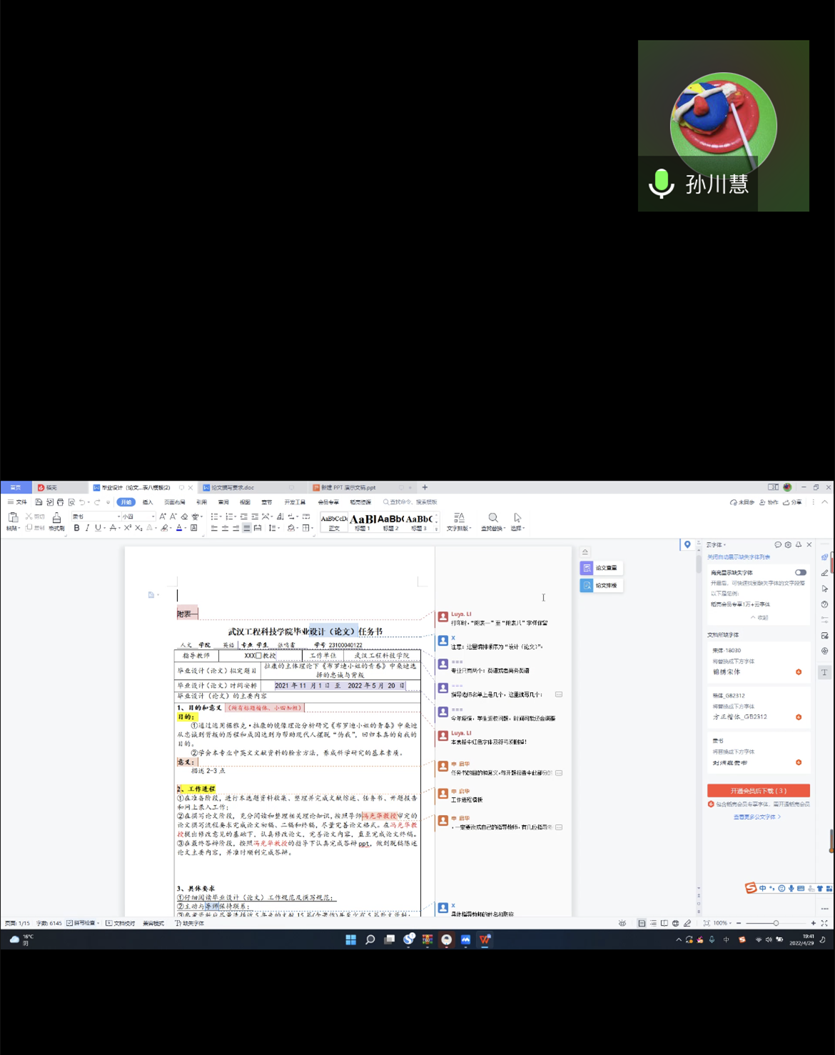 本网讯(通讯员 王静 仲竞华 舒丽红)4月29日晚上,人文学院召开线上2022届毕业生论文专题研讨会。本次会议由教学副院长吴海燕主持,全体2022届毕业生论文指导老师参加。