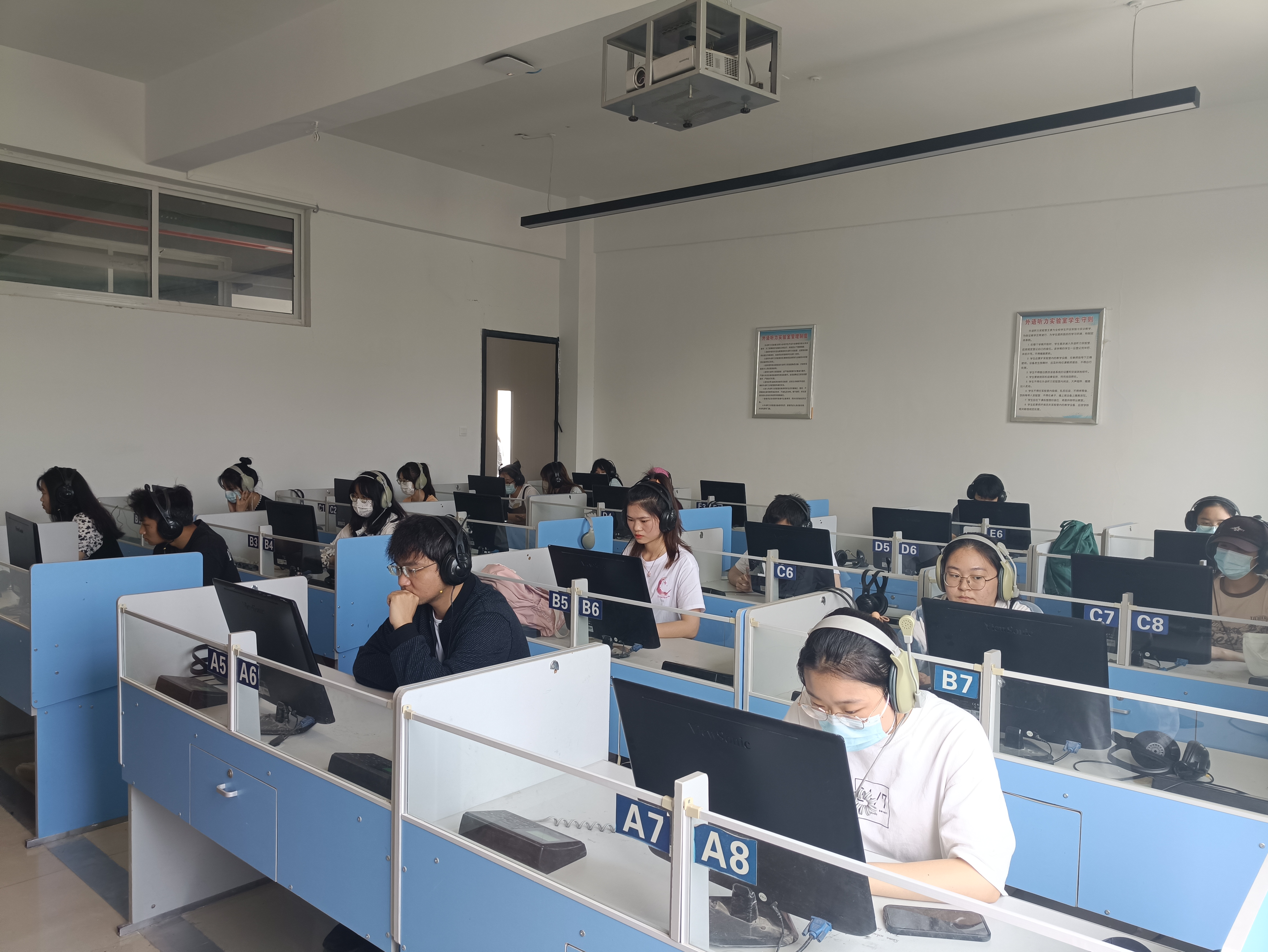5月21日上午11:00-12:00 同学们充分利用自习室、教室等参加英语组笔译初赛。