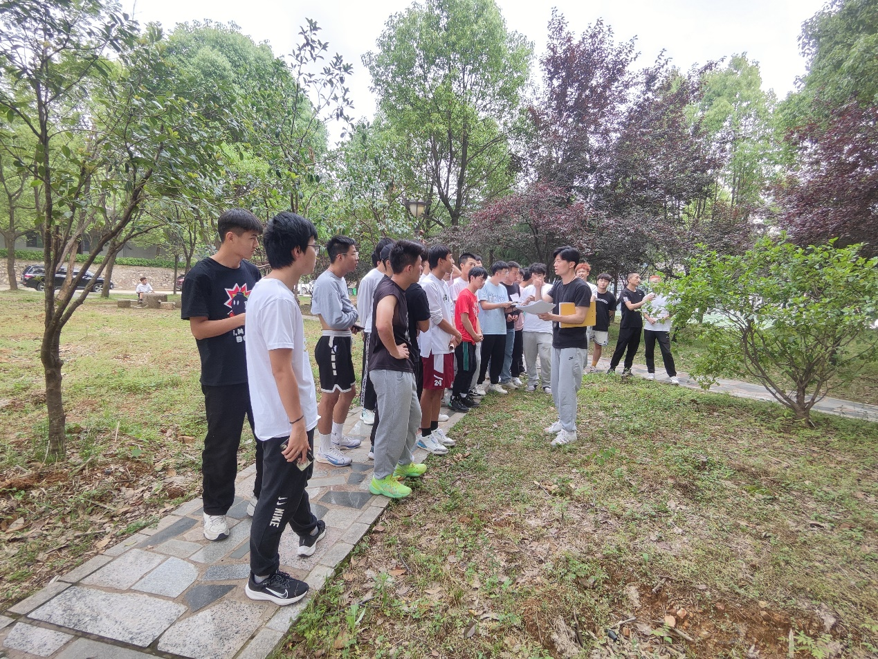课程开始,郭生鼎向参课人员介绍了百米定向活动规则,指出活动共分为五种任务图参赛人员需随机领取其中一种地图,利用现有的指北工具,在设定范围内,通过途中的各种障碍,快速到达地图中标记的各个目标点位,并且要完成各个点位的任务,最后到达终点。与此同时,郭生鼎着重强调了安全问题,点明“友谊第一,比赛第二”的良好体育活动理念并指导相关学生进行赛前示范。
