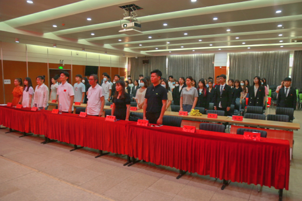 大会伊始,全体起立奏唱国歌。
