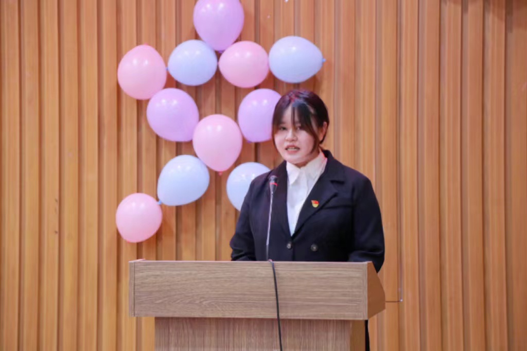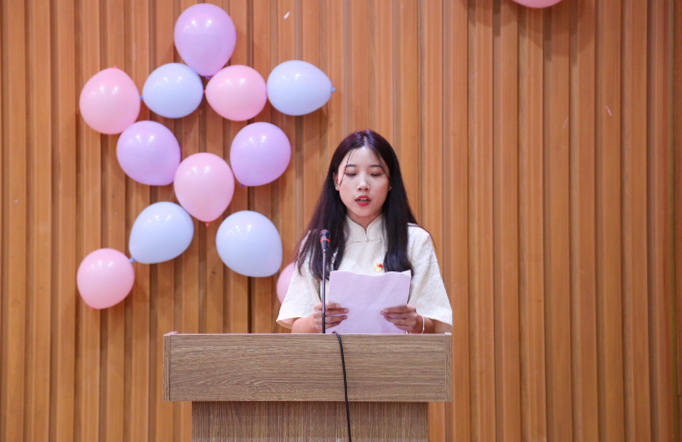 第二届优秀党宣干事张茗发言宣誓。作为优秀党宣干事代表,她分享了在党宣团队里的学习经历和成长蜕变。她代表人文学院党宣干事郑重承诺会认真做事、坚定信念、团结奋进、相互学习、相互帮助、知行合一,为人文学院党建宣传工作增光添彩,为民族复兴铺路架桥,为祖国建设添砖加瓦。