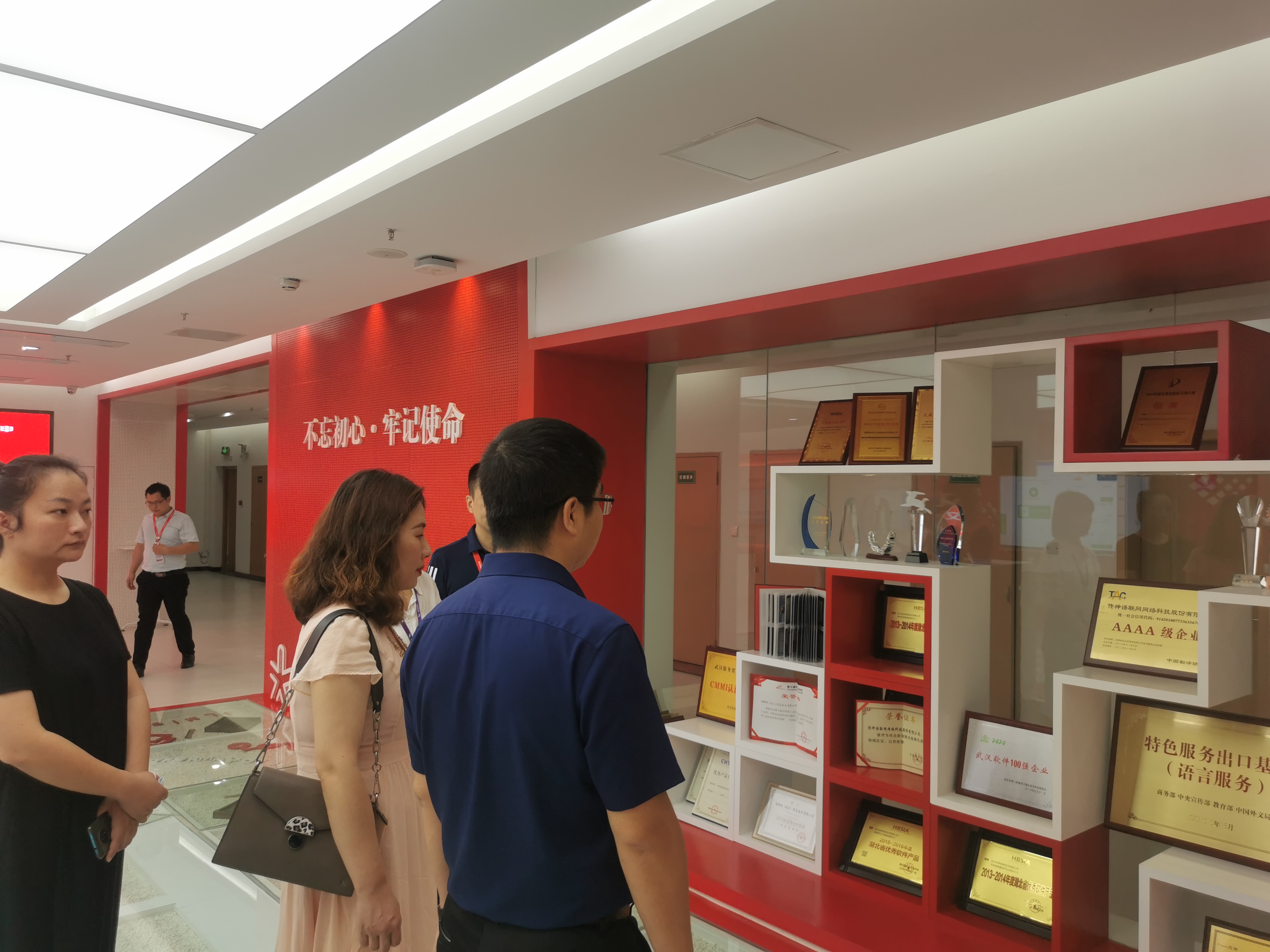 在传神教育事业部资源总监靳伟的解说下,老师们参观了传神党员活动中心和创新创业中心。在传神展厅里,教育事业部大区经理祁琪向老师们展示了最新的语联网技术,如何将外语翻译和最新的互联网科技结合起来,构建全新的语联网生态,作为十二五国家支撑计划得到总理的高度重视。