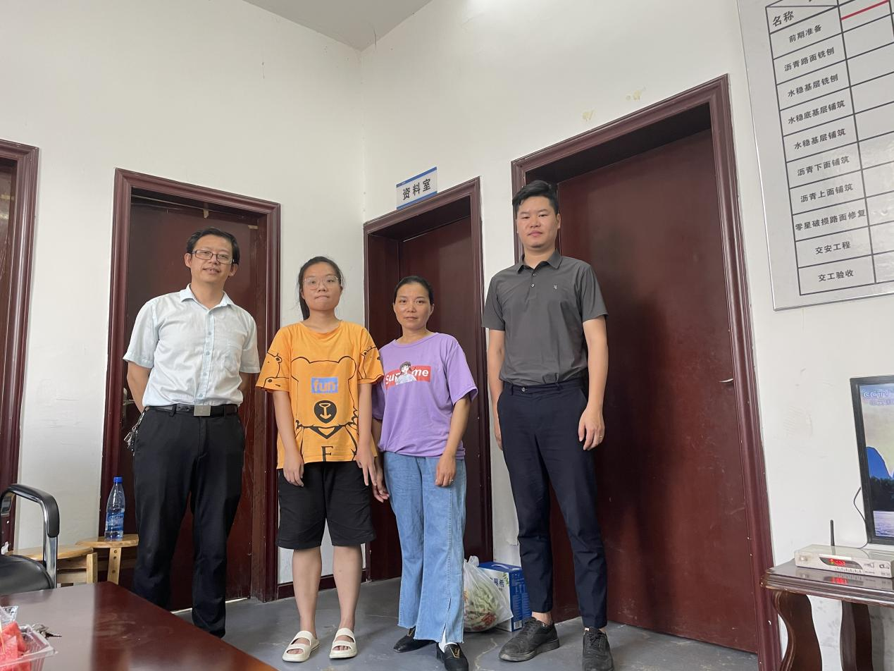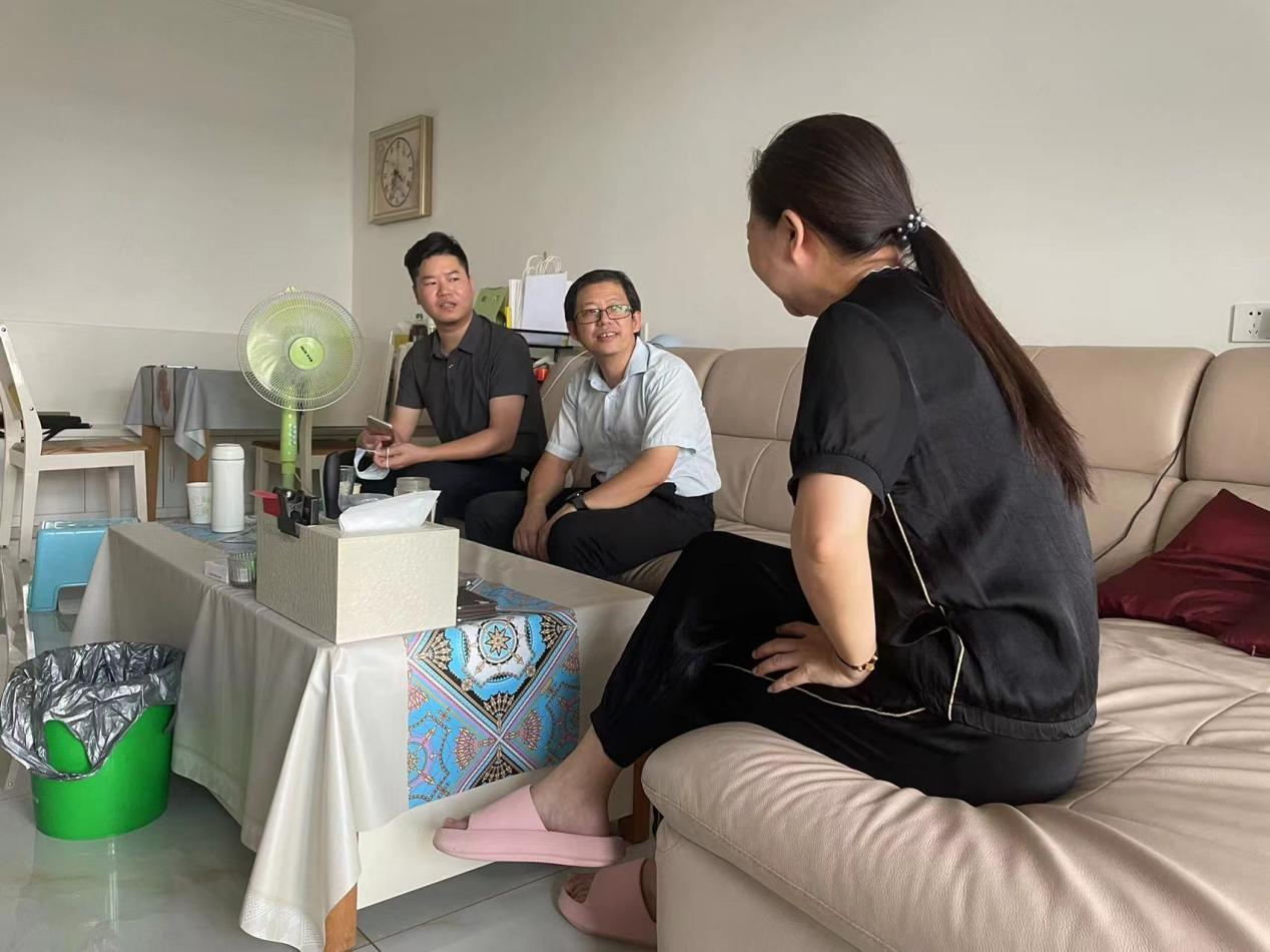 本网讯(通讯员 田欣)为积极响应湖北省教育厅“万名辅导员访万家”工作部署,进一步了解学生假期学习生活状态,充分发挥家校协同育人作用,2022年8月16日,武汉工程科技学院人文学院党总支书记李毅、学工科长余进文、辅导员田欣一行开展家访活动。