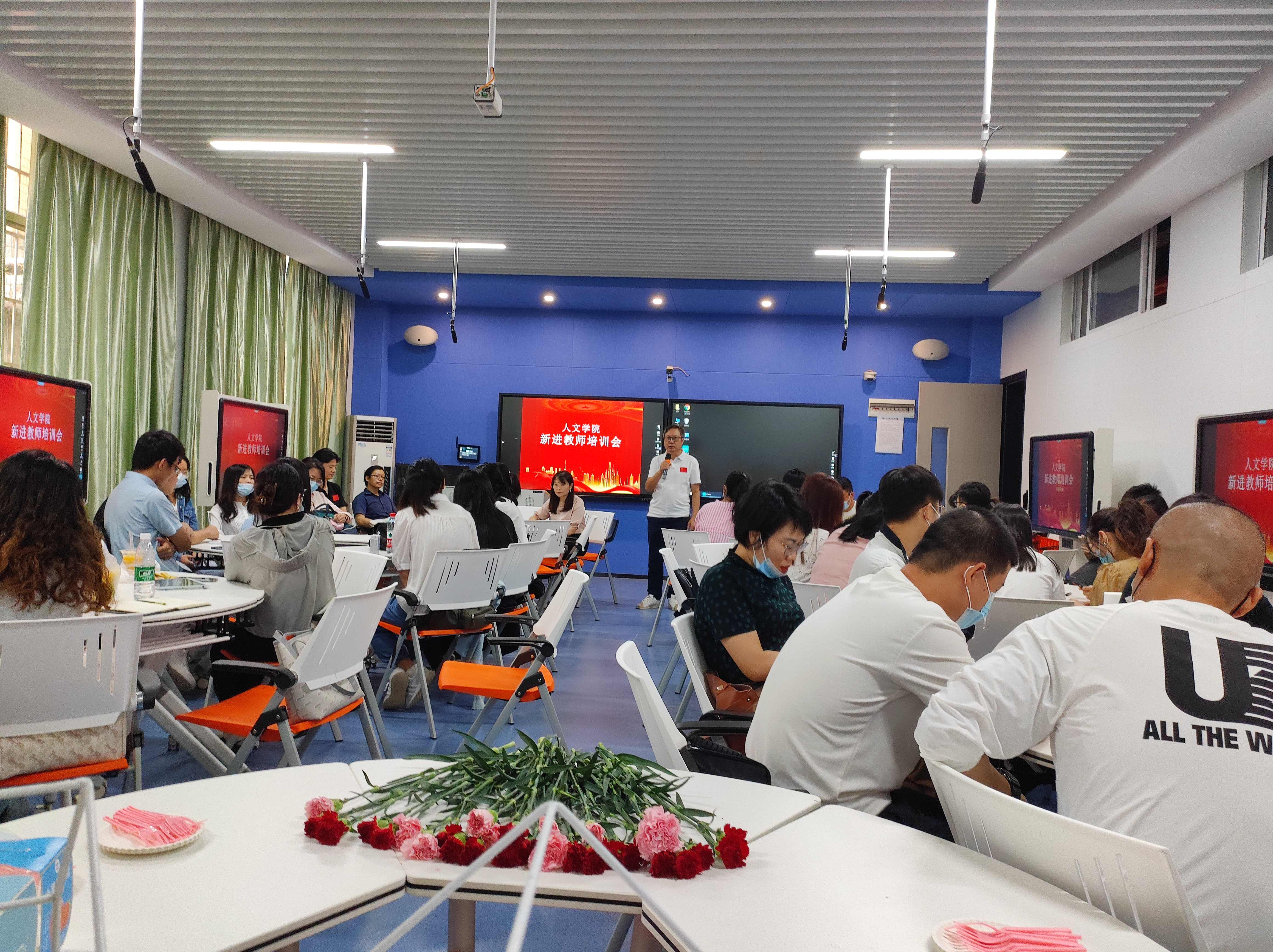 本次新进教师培训总结会是我校新入职员工系列培训的重要组成部分,学院为新进老师准备了鲜花和月饼,提前共度教师节和中秋节,充分体现了学院对教师的人文关怀。希望新进教师尽快熟悉学校、融入学校,以积极的心态、高度的热情走上新岗位,为学校的发展做出贡献。