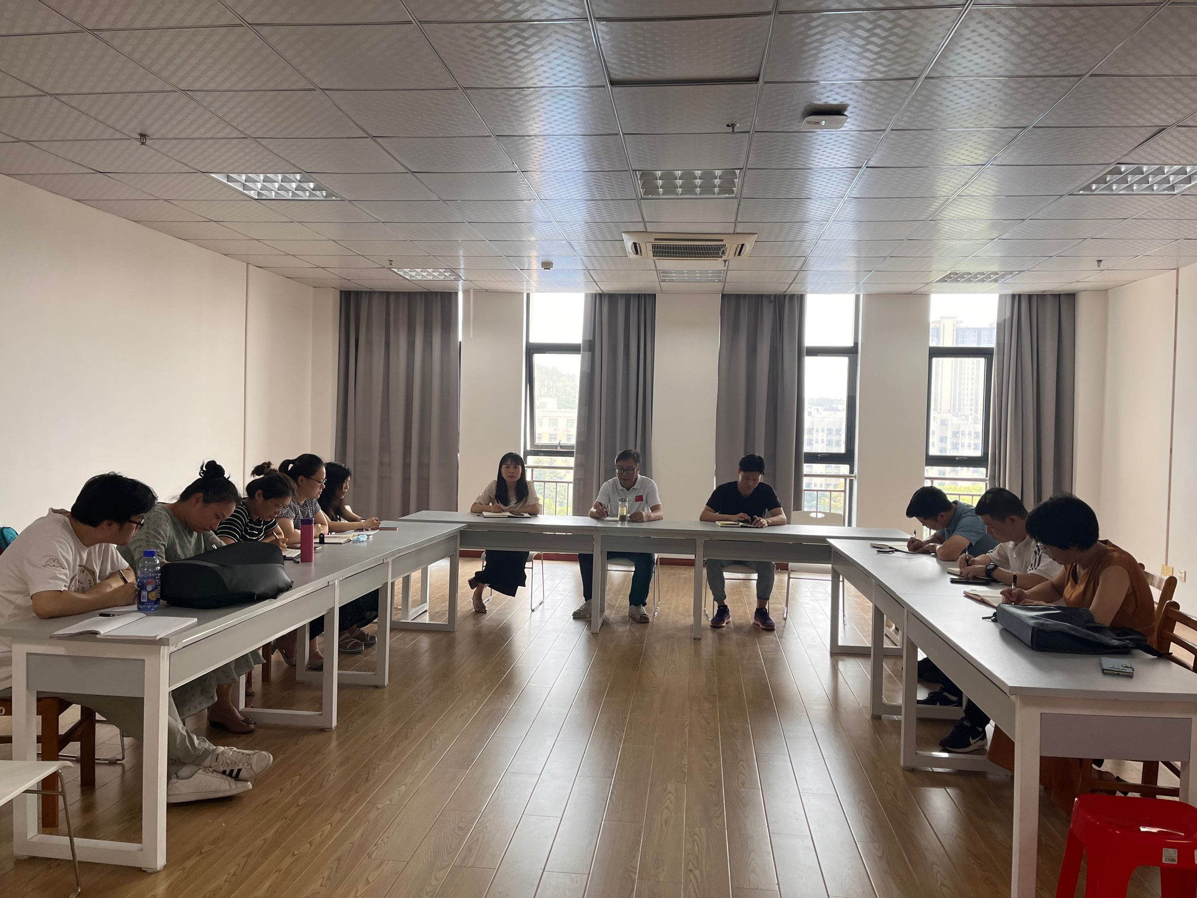 本网讯(通讯员 文晓东)8月26日下午,人文学院在综合楼607就学校两天的培训学习开展研讨交流会,此次会议线上线下同步进行,会议由院长吴亚林主持,教学副院长吴海燕、实践教学副院长郭生鼎、学工科长余进文及全体教职工参加会议。本次研讨交流围绕师德师风建设、全面提升教师队伍能力、提升本科教学质量,结合本科教学合格评估要求,结合学校新学期工作安排,以促进我院高质量发展。