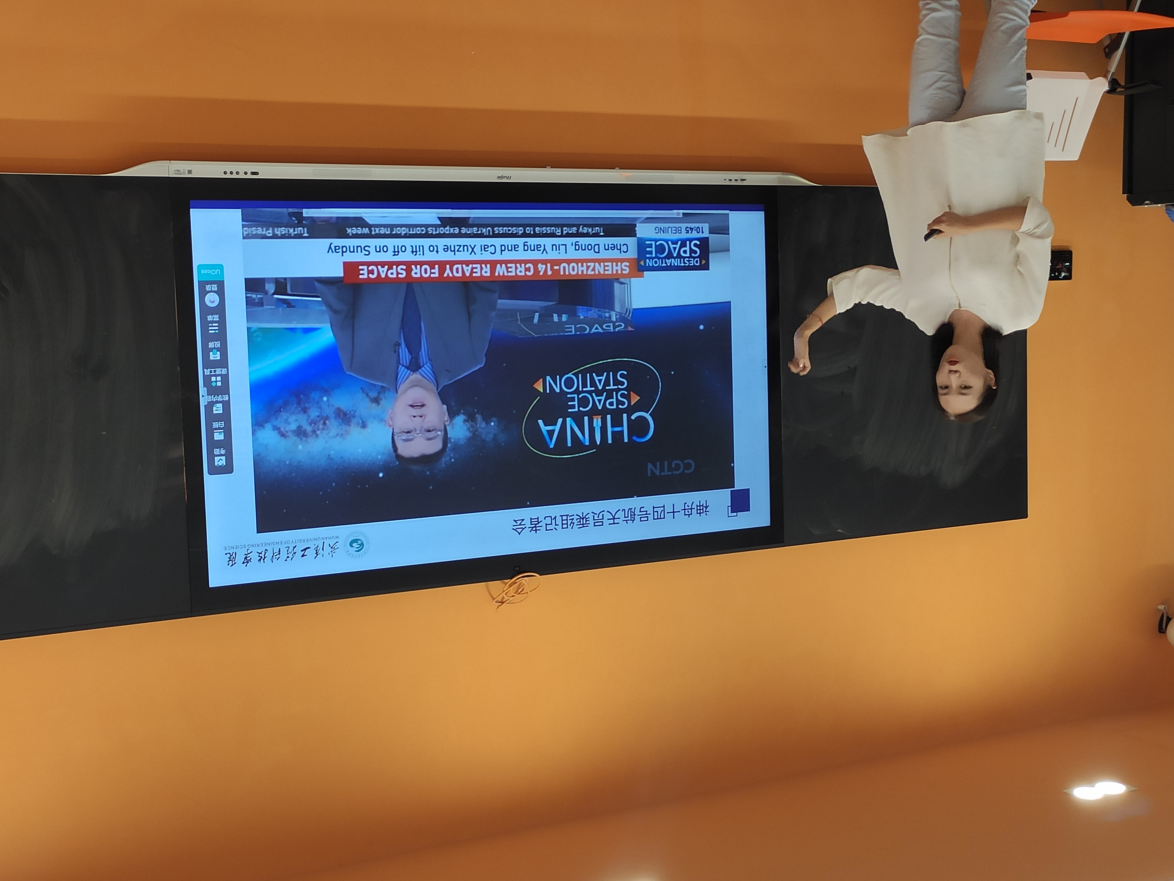 随后,孙川慧副教授组织全体教师开展了磨课教研研讨会。优秀青年教师刘玉婷以所授课程语言学为例,向全体教师做了磨课示范。刘玉婷老师从课程性质、学情分析、教学目标、教学重难点和教学改革思路等方面介绍了授课各个环节,深入浅出地将枯燥的语言学理论与有趣的案例相结合,讲授了词素的语言学相关知识点。在知识讲授中,刘玉婷老师播放了神舟十四号航天员乘组记者会,并基于宇航员的英文单词astronaut的词素构成,介绍了taikonaut这个新词。“Taikonaut”是由中文“太空”的拼音和英语单词astronaut混成的拼缀词,意思是Chinese astronaut(中国宇航员)。神五上天后,BBC、NYtime等知名媒体均使用了这一单词,并被录入兰登书屋词典、柯林斯高阶词典等权威词典中。它体现了中国航天事业的巨大进步。该教学环节的设计充分体现出课程思政是思政课程的延续,是专业课程的思想升华的主题思想。刘老师基于课程大纲和教学规律,深入挖掘专业课和思政教育的契合点,使专业技能的显性教育和课程思政的隐性教育得到了同向同行协同发展。