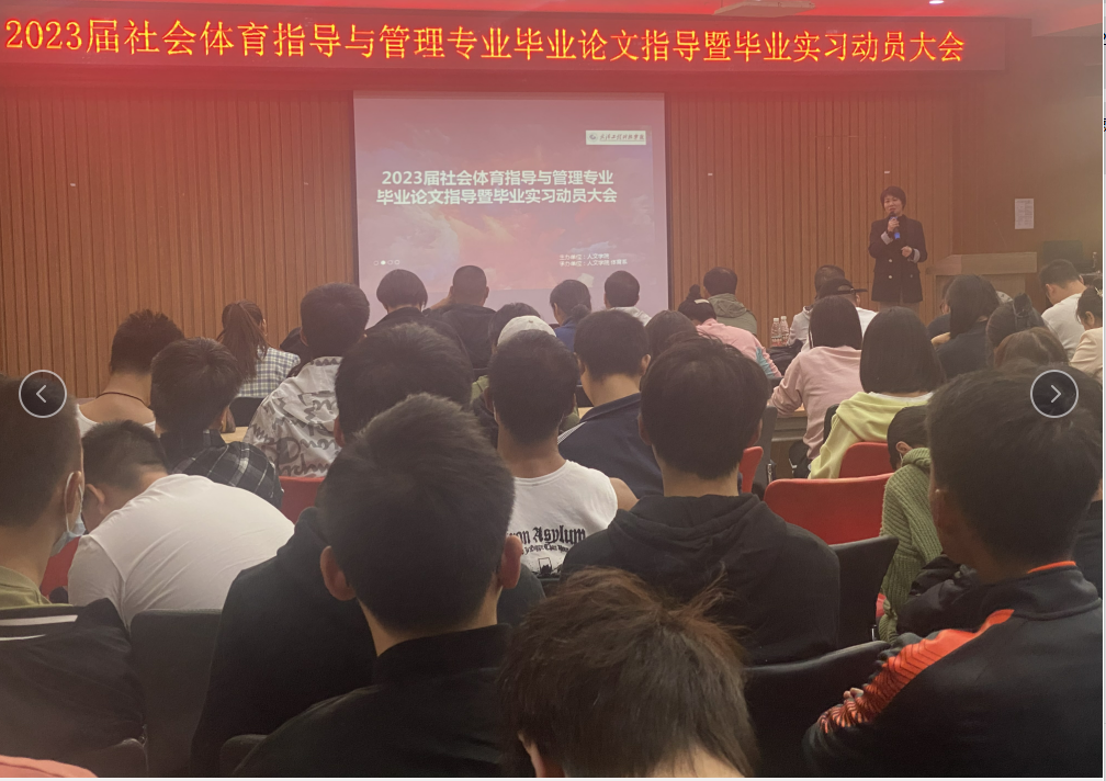 本网讯(通讯员 徐娅妮 陈瑞)为扎实做好我院2023届毕业论文和实习工作,保障实习工作的顺利开展,10月12日下午,人文学院体育系在学生事务中心311报告厅召开了2023届社会体育指导与管理专业毕业生论文指导暨毕业实习动员大会。人文学院副院长郭生鼎,体育系主任宋英,公共体育部主任易鹏出席了本次大会,人文学院体育系全体教师及2019级社会体育指导与管理专业全体学生参加了本次大会。