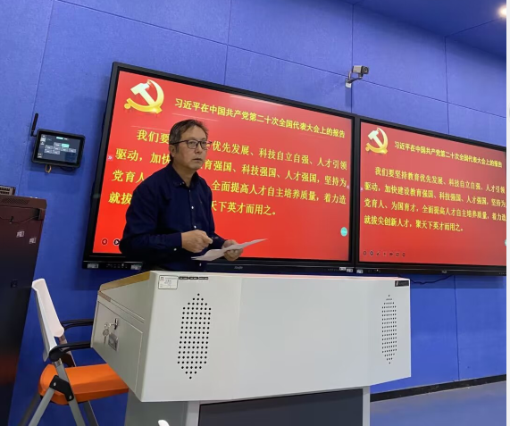 教育系主任汝利娜带领大家学习二十大报告内容,并分小组讨论谋划学科与专业建设,教育系何忠家老师表示将认真学习贯彻好党的二十大精神,听党话、跟党走,在专业建设方面建议着力推动产教融合、校企合作和服务技能型建设,让课程结构更加优化,切实肩负起为党育人、为国育才的使命,努力培养服务基层教育事业的高素质高技能人才。