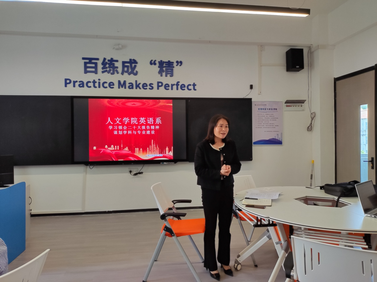 吴海燕副院长出席英专教研室会议并作出讲话,她希望老师们重视外语教学、加强自身教学、教研、专业建设,积极申报各级别项目,互相交流研讨教学经验、科研经验。