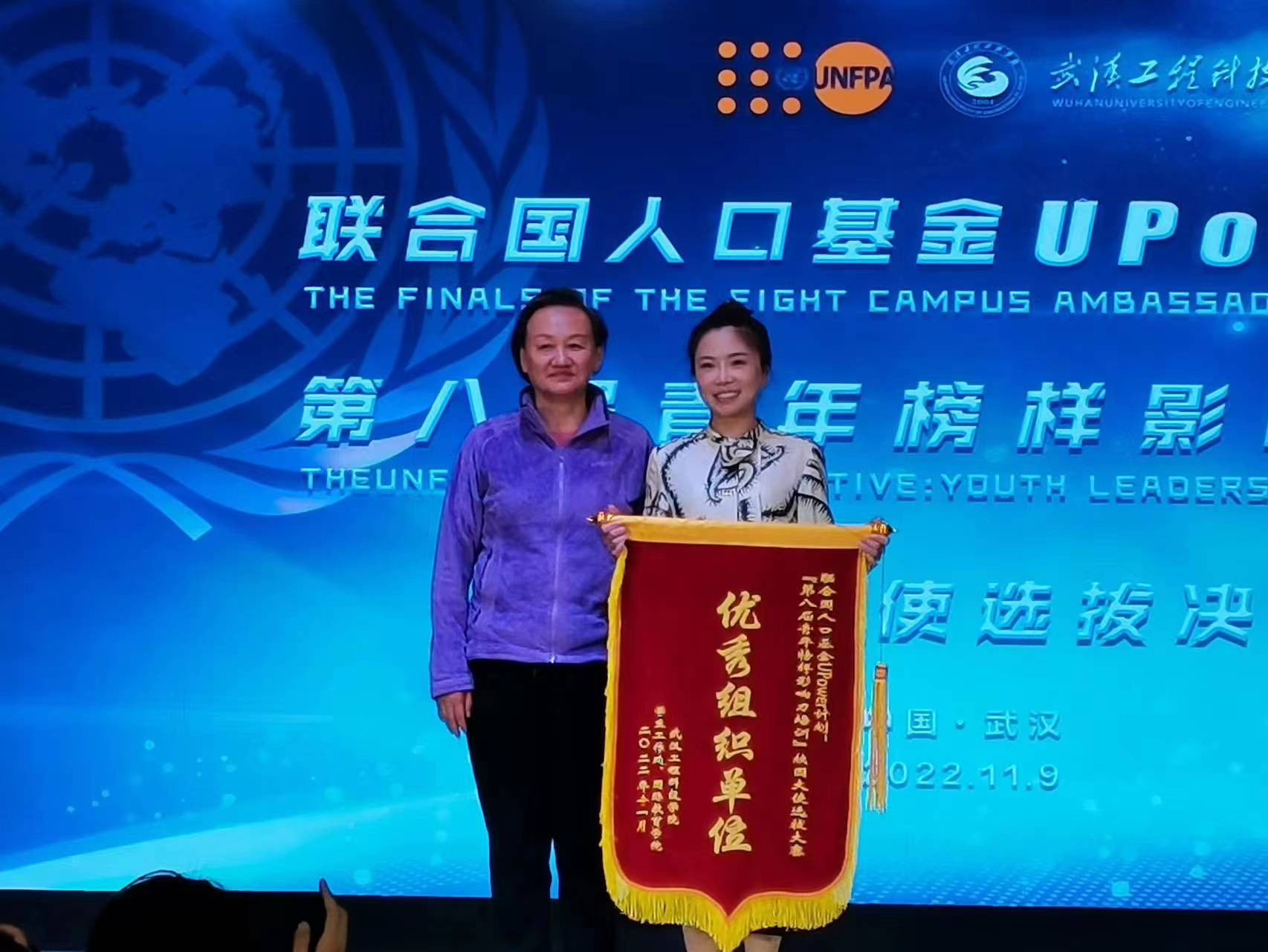 本网讯(通讯员 陈瑞 李丽红 蔡晓庆 覃飞菲 孙尚诚 杨瑾夷)2022年11月9日下午,武汉工程科技学院组织开展了“联合国人口基金UPower计划:第八届青年榜样影响力培训”项目校园大使选拔赛。武汉工程科技学院人文学院获得了本次“联合国人口基金UPower计划:第八届青年榜样影响力培训”项目校园大使选拔优秀组织单位。